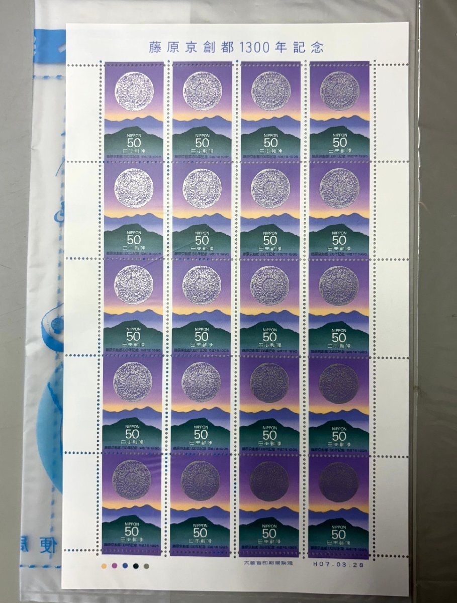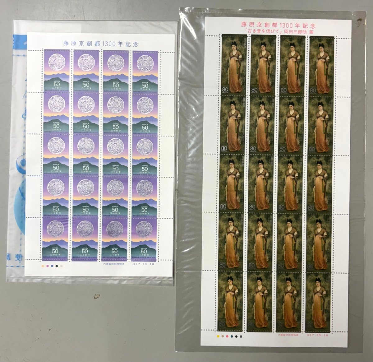 | 64 切手シート 80円.50×20枚 各1シート 藤原京創都1300年記念 岡田三郎助 未使用 カラーマーク | ||||