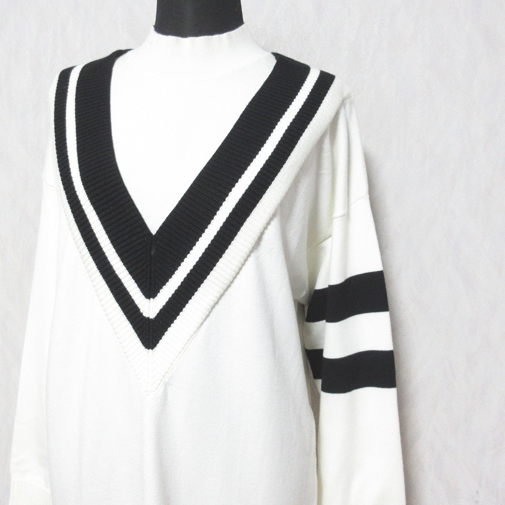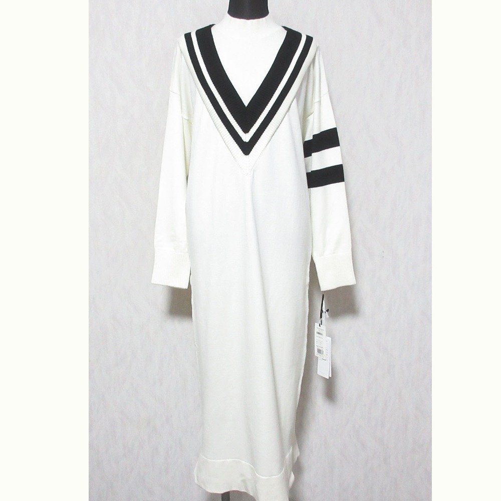 未使用 23AW Diagram ダイアグラム グレースコンチネンタル バイカラーVネックニットワンピース 0323433158 サイズ36 ホワイト