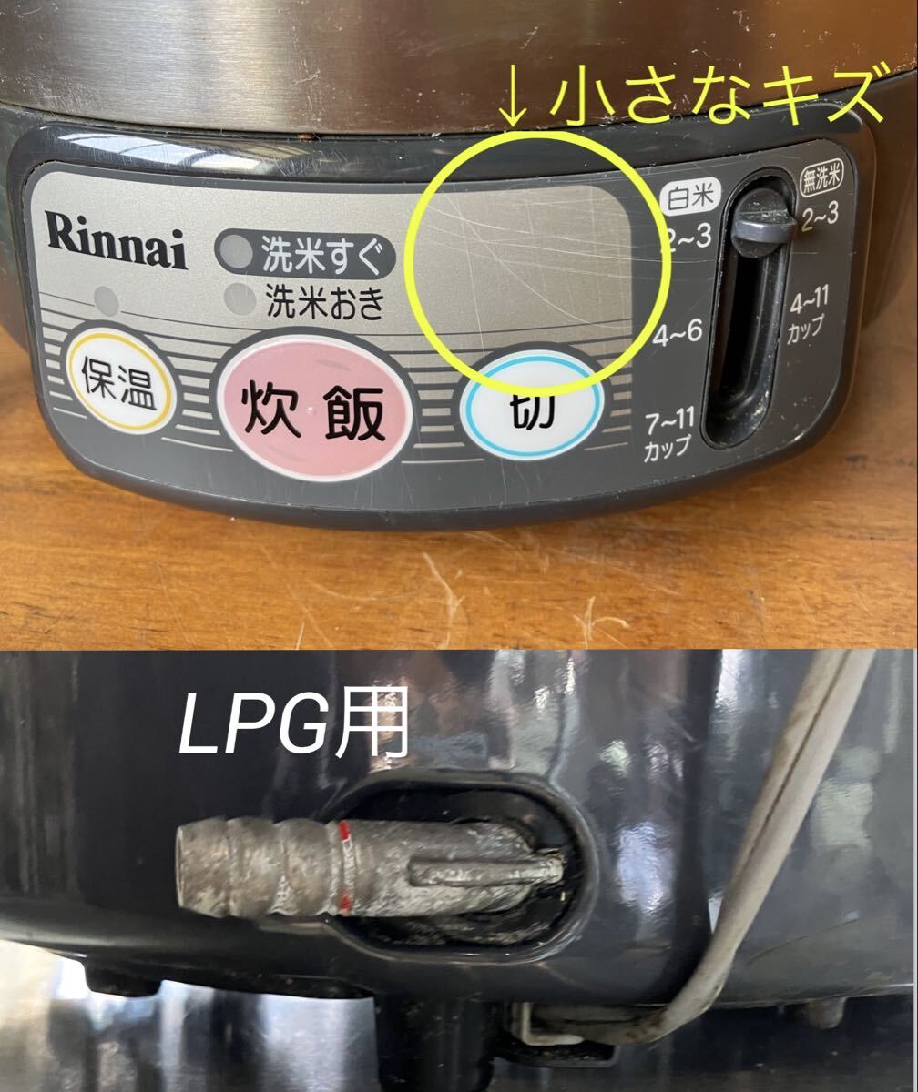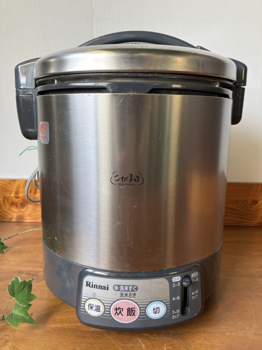 ◆ リンナイ 電子ジャー付きガス炊飯器(プロパンガス用) 【こがまる】 2~11合 1.8L(1升)ブラック RR-100VLの出品です。 ◆メーカー:リンナイ ◆参考価格:¥27480(税込)〜 ◆型式: RR-100VL ◆電源:単相100V 50/60Hz ◆外形寸法: W309×D286×H359(mm) ◆年式:2004年製 ◆重量:6.1kg ◆材質:ステンレス製 ◆清掃:簡潔な清掃となります。気になる方はお手元にて消毒の上で使用ください。 ◆付属:掲載画像にあるものですべてです ホースはございません。 ※本品は、現状でのお渡しとなります。 ◆状態 :古いですが、大きな凹み等もなく比較的きれいです。 :少しスレ,キズございます。 ※あくまで中古品の為、載せきれていない箇所に細かい傷・サビなど 使用感等がある可能性がございます。 事前に、状態を画像で確認の上、ご納得の上でご入札ください。 ※印西支店にて、実物の見学も可能です。 気になる点がございましたら、ご遠慮なくお問合せください。 ※LPガスの接続はお近くの専門業者に、ご依頼ください。 【POINT】 2004年製です。動作良好点火チェック済み。是非この機会にご検討ください ※配送について※ 別途見積にて最安値の先での出荷となります。 ご希望の配送方法や到着日などの指定については予め、最初のメッセージでお伝えください。 出荷準備が整ってからの変更は対応致し兼ねます、ご留意ください。 【弊社商品について】 クリーニング済・詳細UP画像を掲載しております。 入札頂いた時点で状態に納得下さっているものと致します。 恐れ入りますが、細かい事・箇所が気になる方、中古品にご理解の無い方は当方での入札はご遠慮ください。 ◆◆ 管理番号:L01-70812C412◆◆ ★本商品は店頭販売も平行して行っております。 その為、オークション開催中はできる限り入札を優先いたします。 ただ少人数で対応しております関係で、取下げが間に合わない場合もございます。 その際には、落札後に完売の旨を速やかに一報差し上げます。 どうか、その際にはご迷惑をおかけしますがご理解・ご協力のほどお願いいたします。