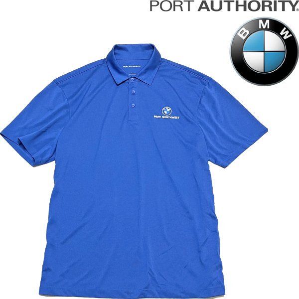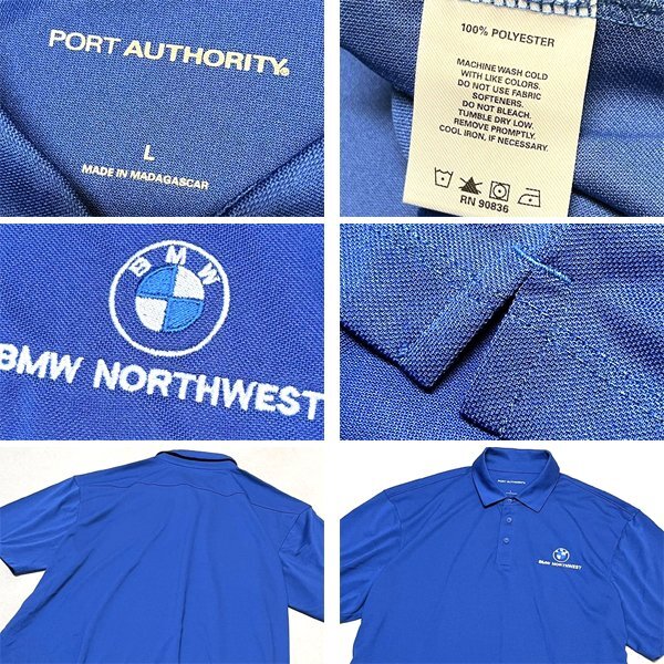 1点物◆BMW車ビーエムダブリュー青ポリ素材ポロシャツ古着メンズLレディースOKアメカジ90sストリートスポーツ半袖ブランド自動車企業349657