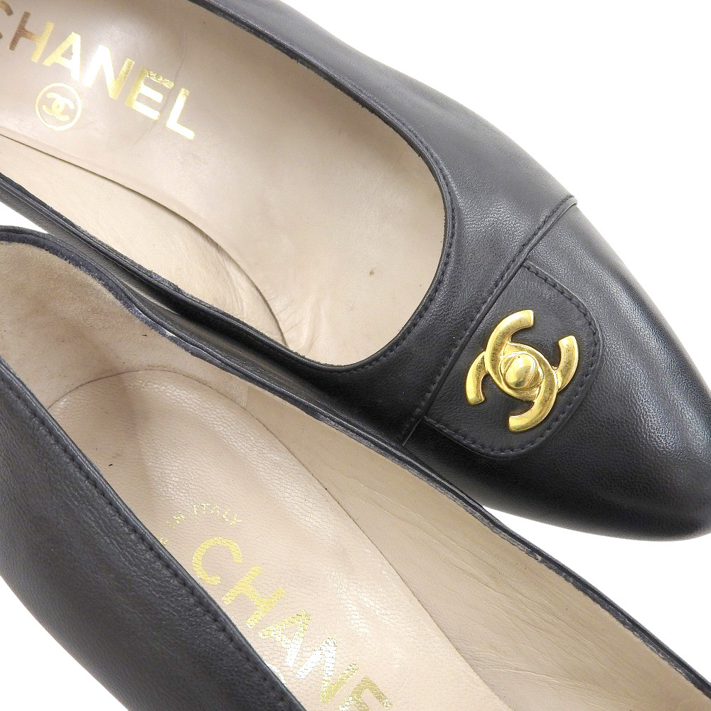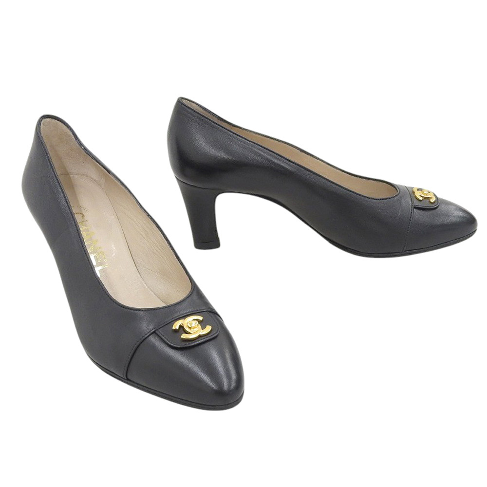 美品 シャネル 90年代 ヴィンテージ アーカイブ ココマーク メタル ラムレザー パンプス ドレスヒール 36.5 22.5cm 黒 超希少 レディース |