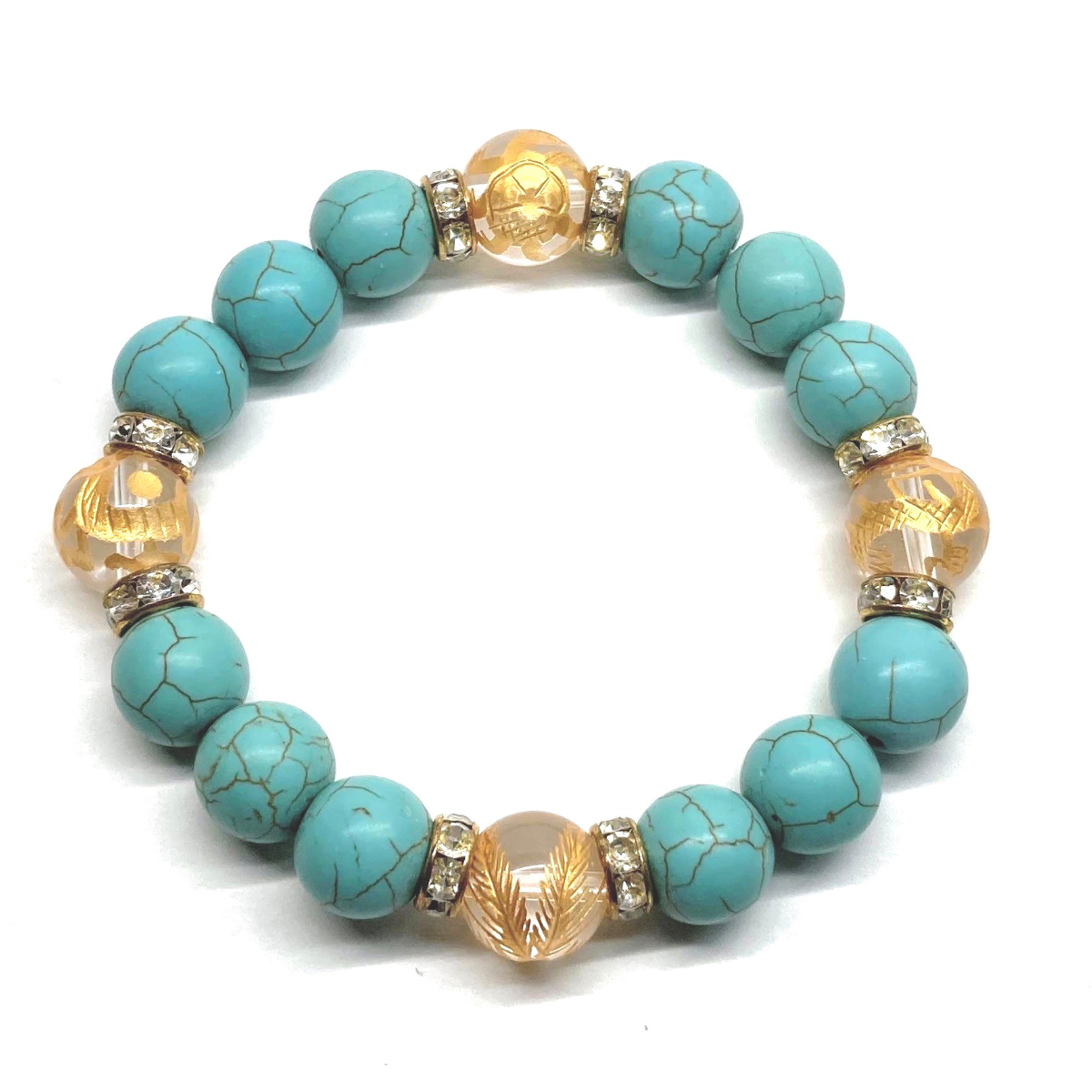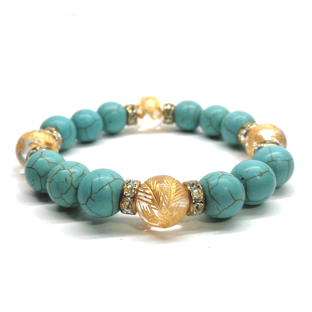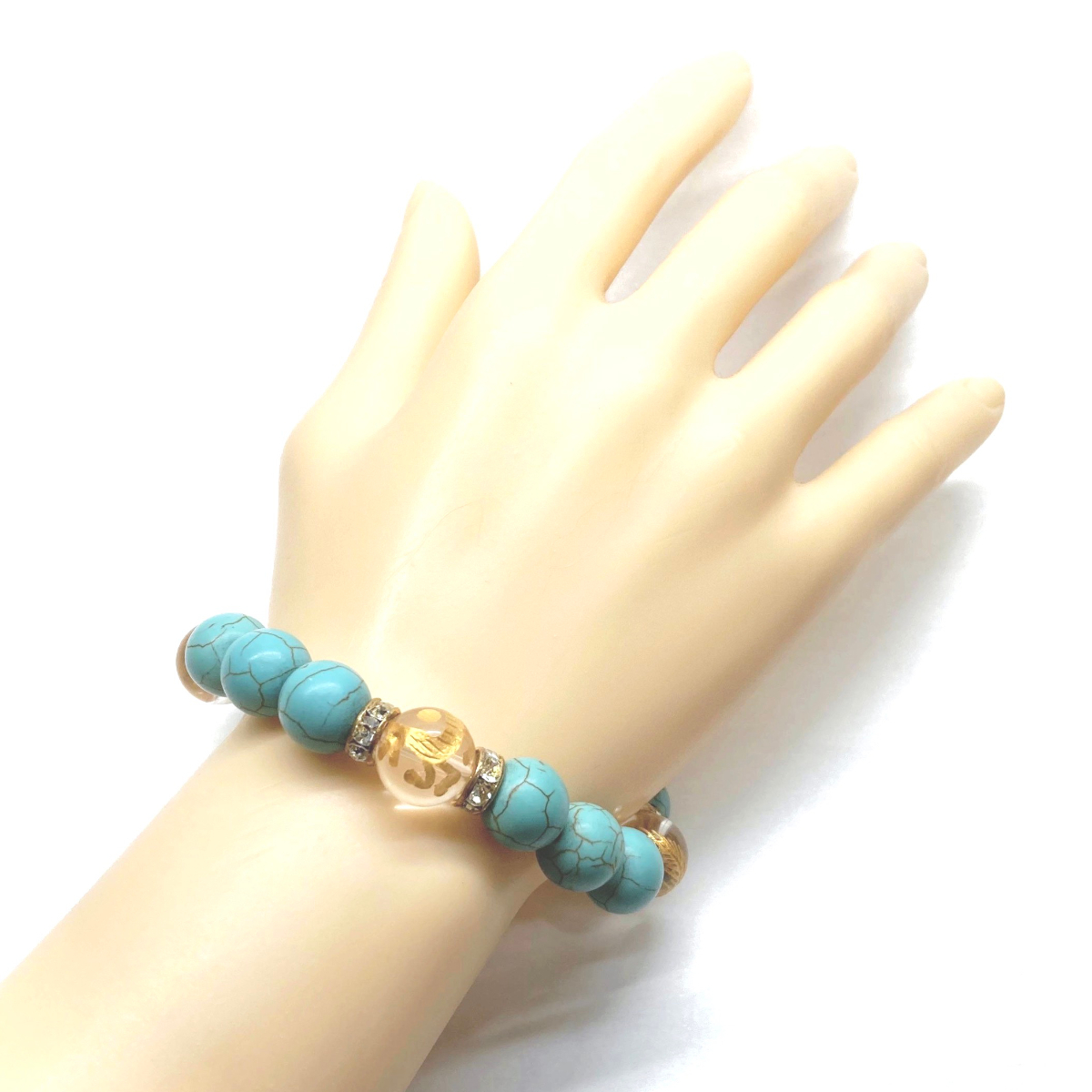 四神獣金彫水晶×ターコイズ 12mm パワーストーン ブレスレット青龍 白虎 玄武 朱雀 運気上昇 お守り 金運 健康運 四神獸 四神相応 G #2