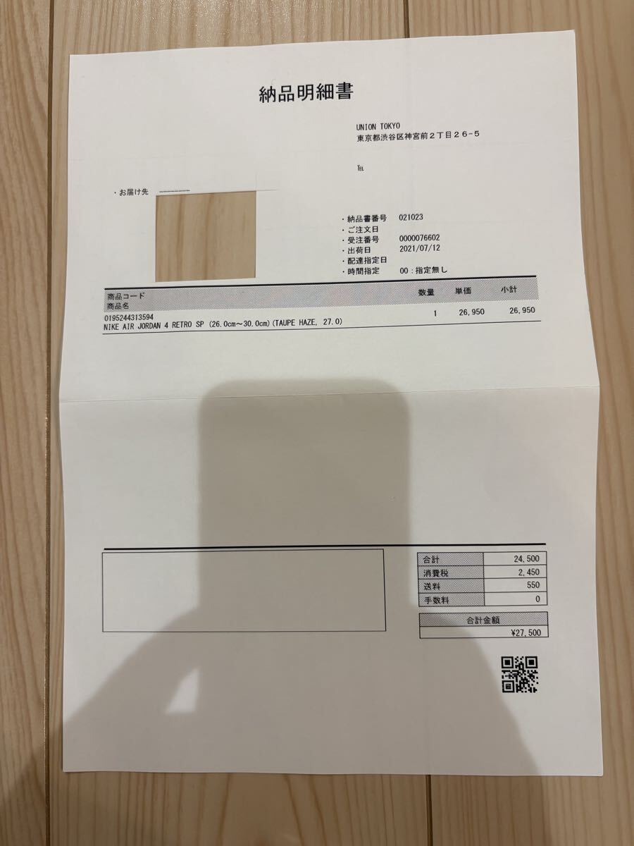新品未使用のNike AIR JORDAN 4 SP union TAUPE HAZEです。