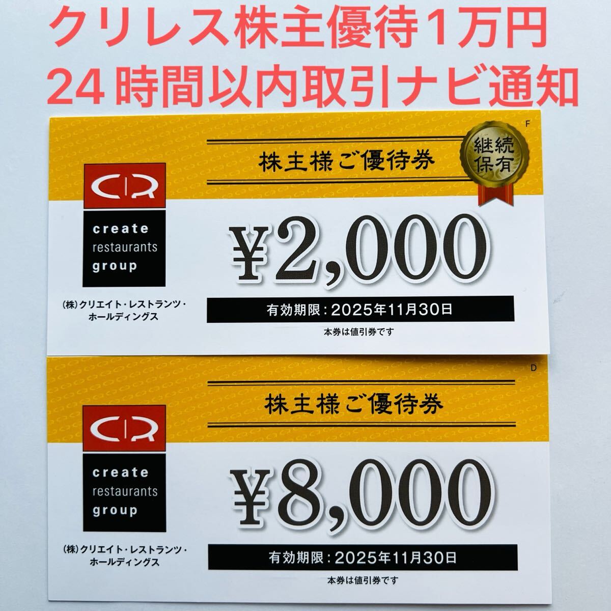 クリエイトレストランツ 株主優待券 合計1万円分 取引ナビ番号通知のため送料無料です。