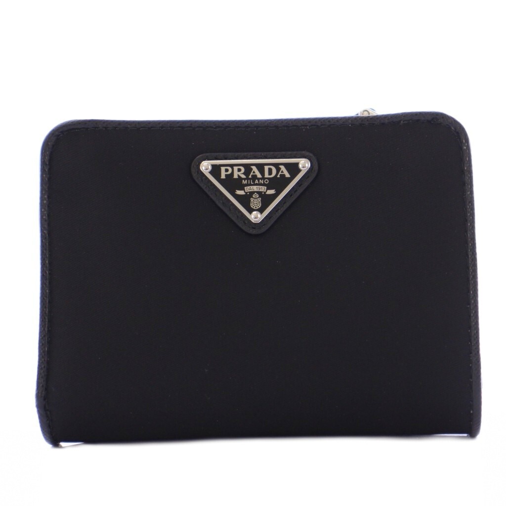 プラダ PRADA PORTAF PICCOLO LAMPO 二つ折り財布 トライアングルロゴ ナイロン ブラック 1ML018 /KH ■OH レディース