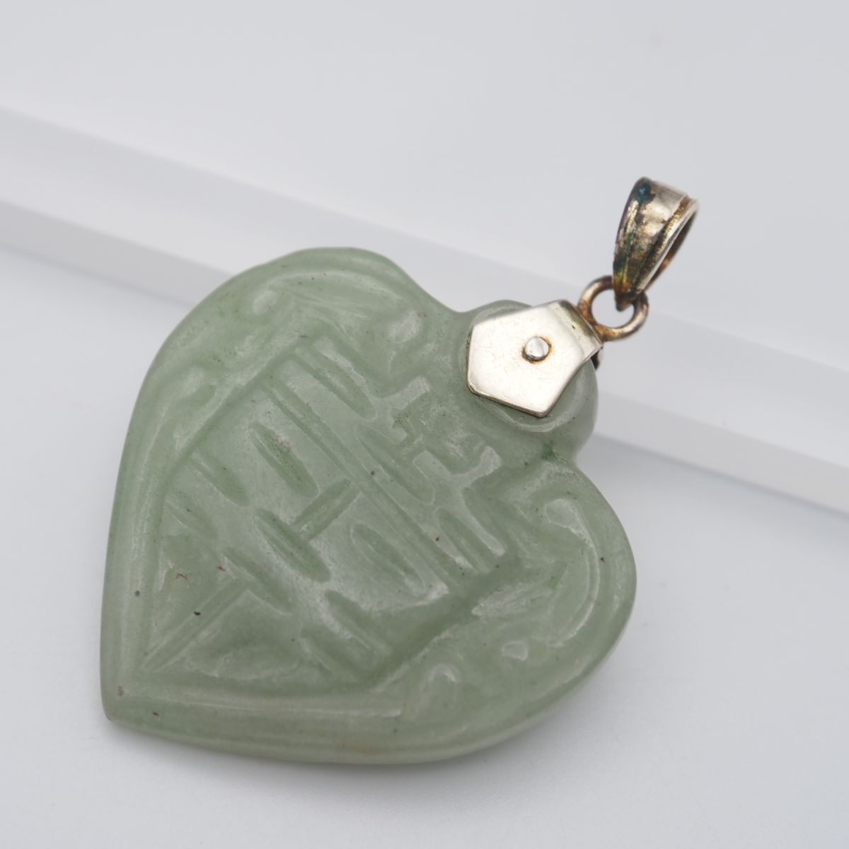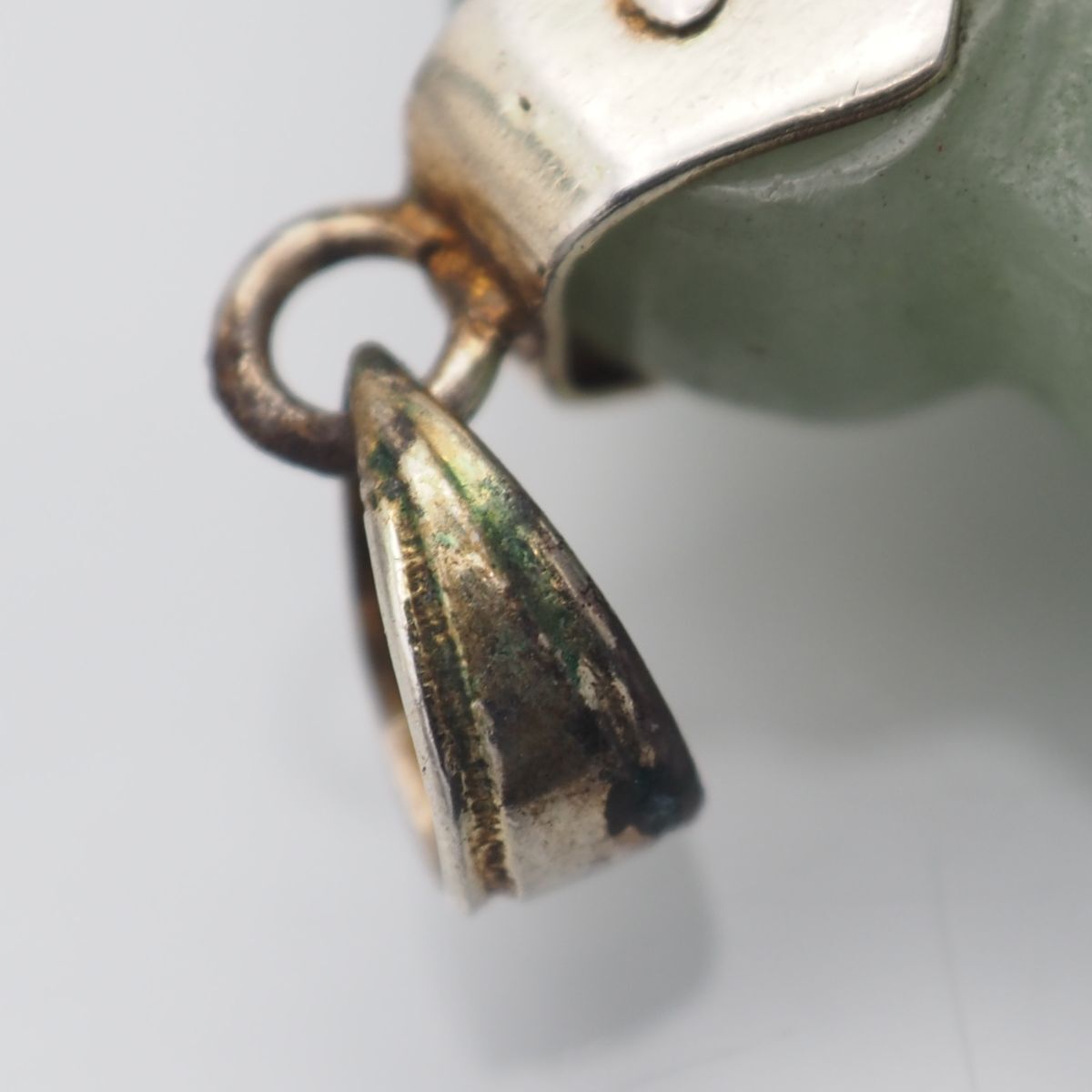 C169 翡翠 ヒスイ ペンダント トップ 彫刻 デザイン シルバー チャーム ヘッド アンティーク 5月誕生石