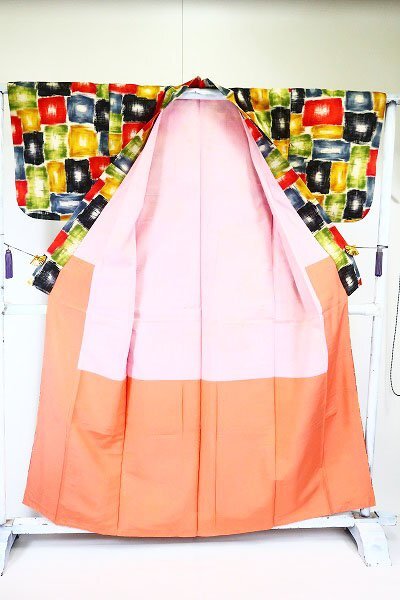 〔着物の色〕 多色 〔八掛の色〕 サーモンピンク 〔着物の素材〕 正絹 |