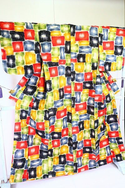 アンティーク 小紋 銘仙 身丈155cm カラフル 多色 大正ロマン レトロ 正絹 仕立て上がり kimono 着物フィ 19667 |