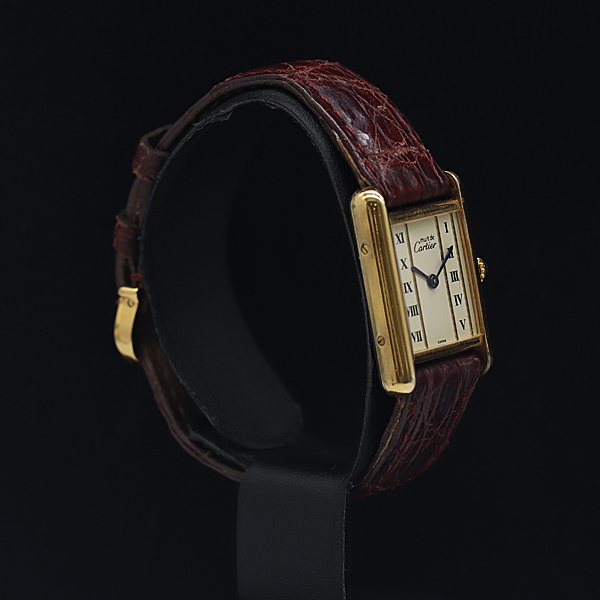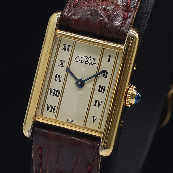 1円 稼動 良品 カルティエ マストタンク SV925 アイボリー文字盤 QZ レディース腕時計 0024310 7JWT KTU