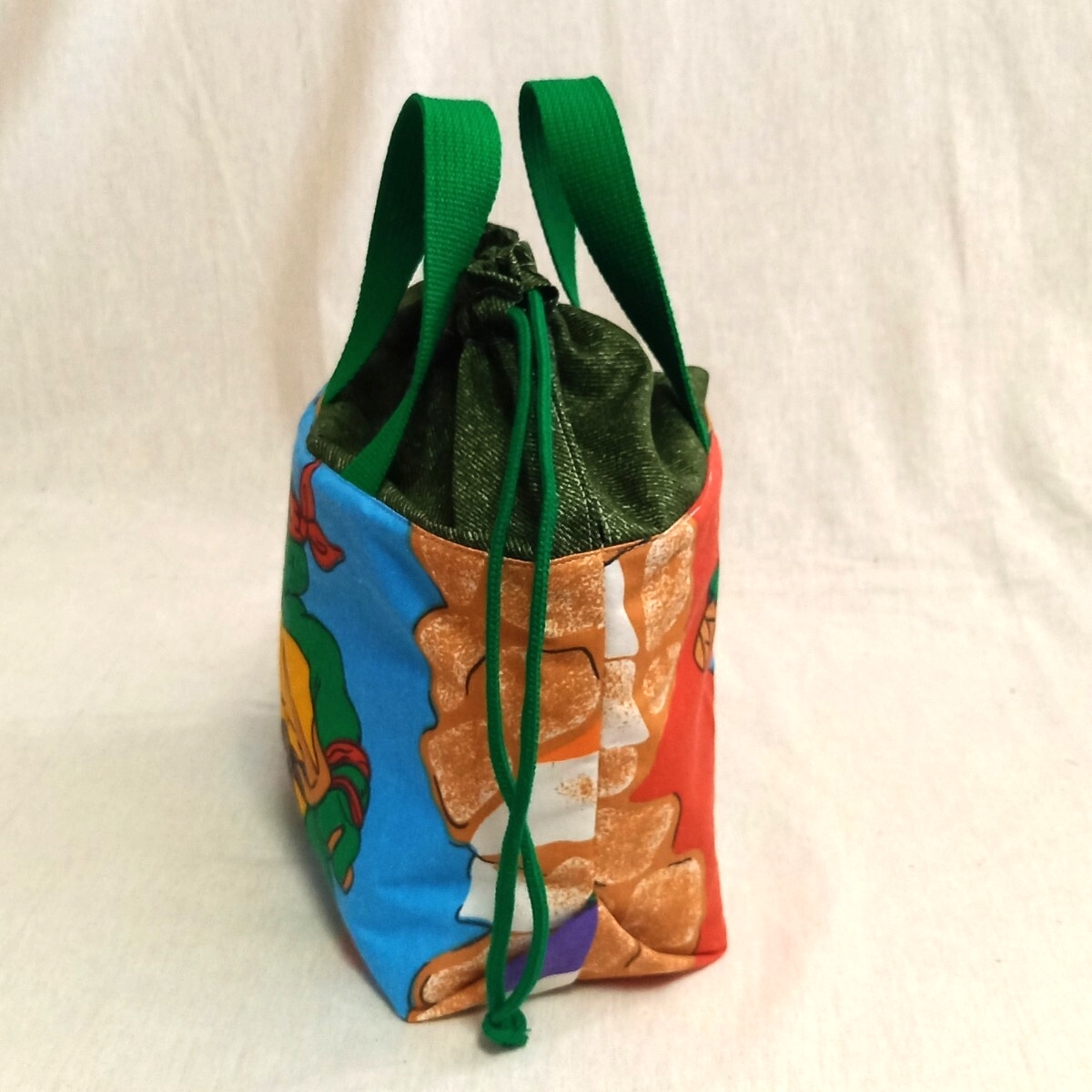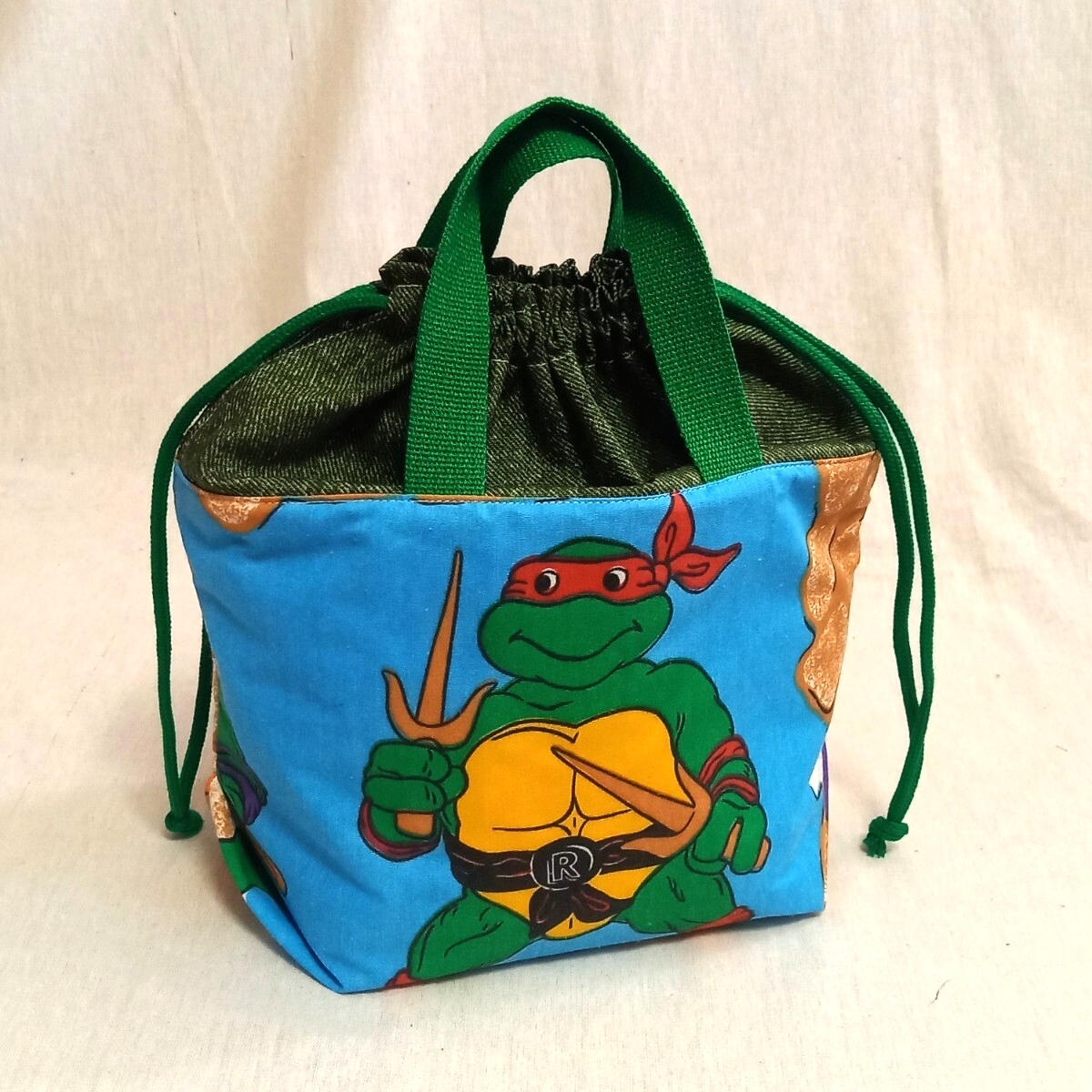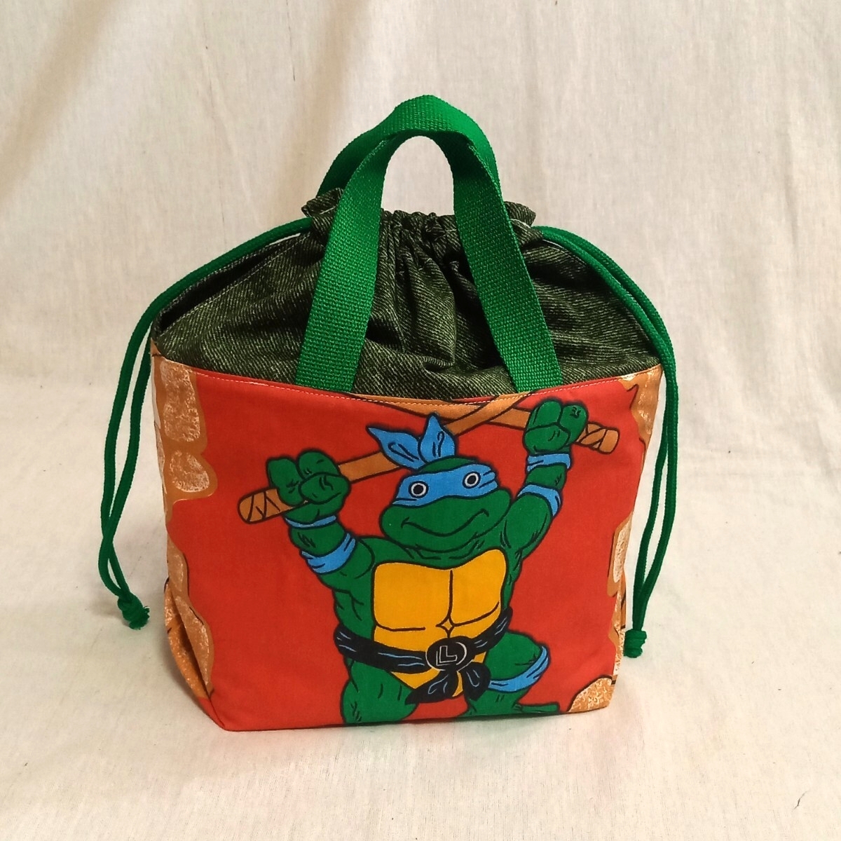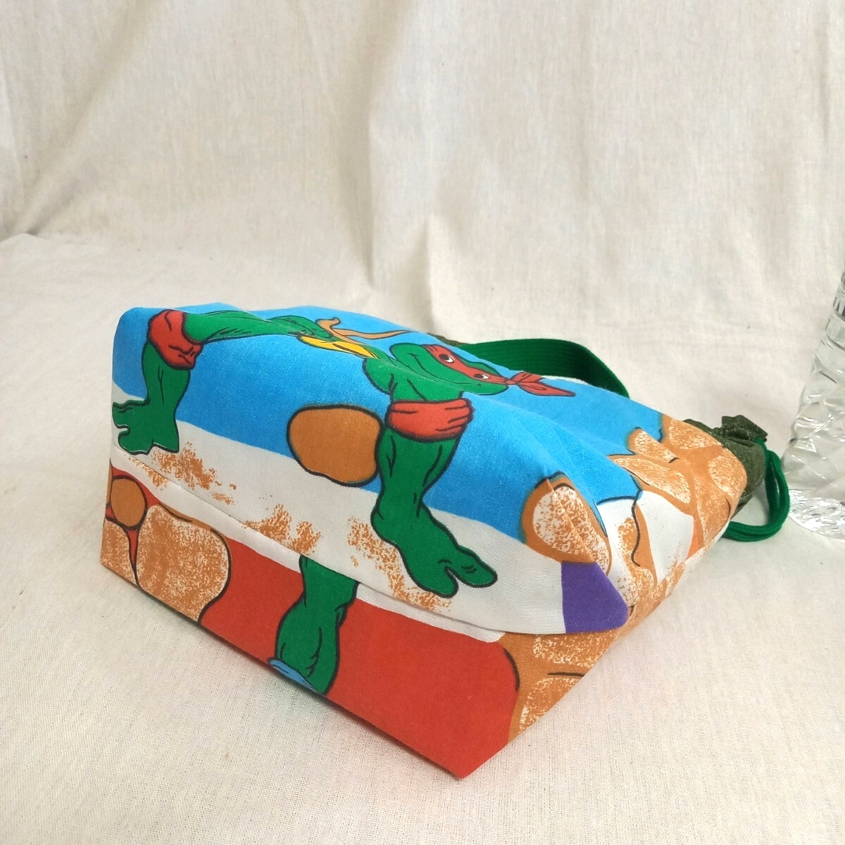 メインはミュータントタートルズのヴィンテージシーツ→現物はもう少し落ち着いた赤です