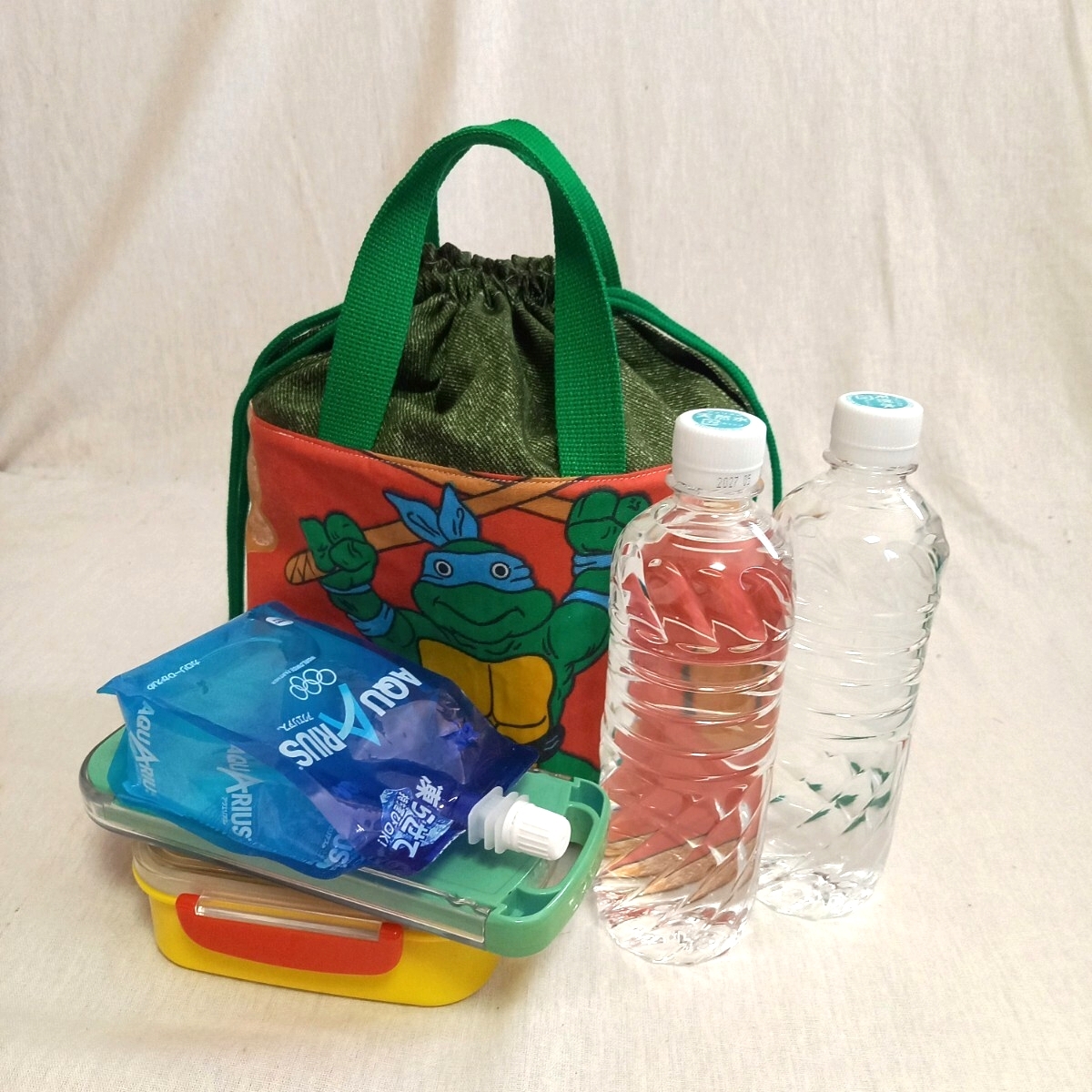 普通サイズのお弁当箱や二段のお弁当箱+トリオセット+500mlペットボトル2本、パウチ飲料等