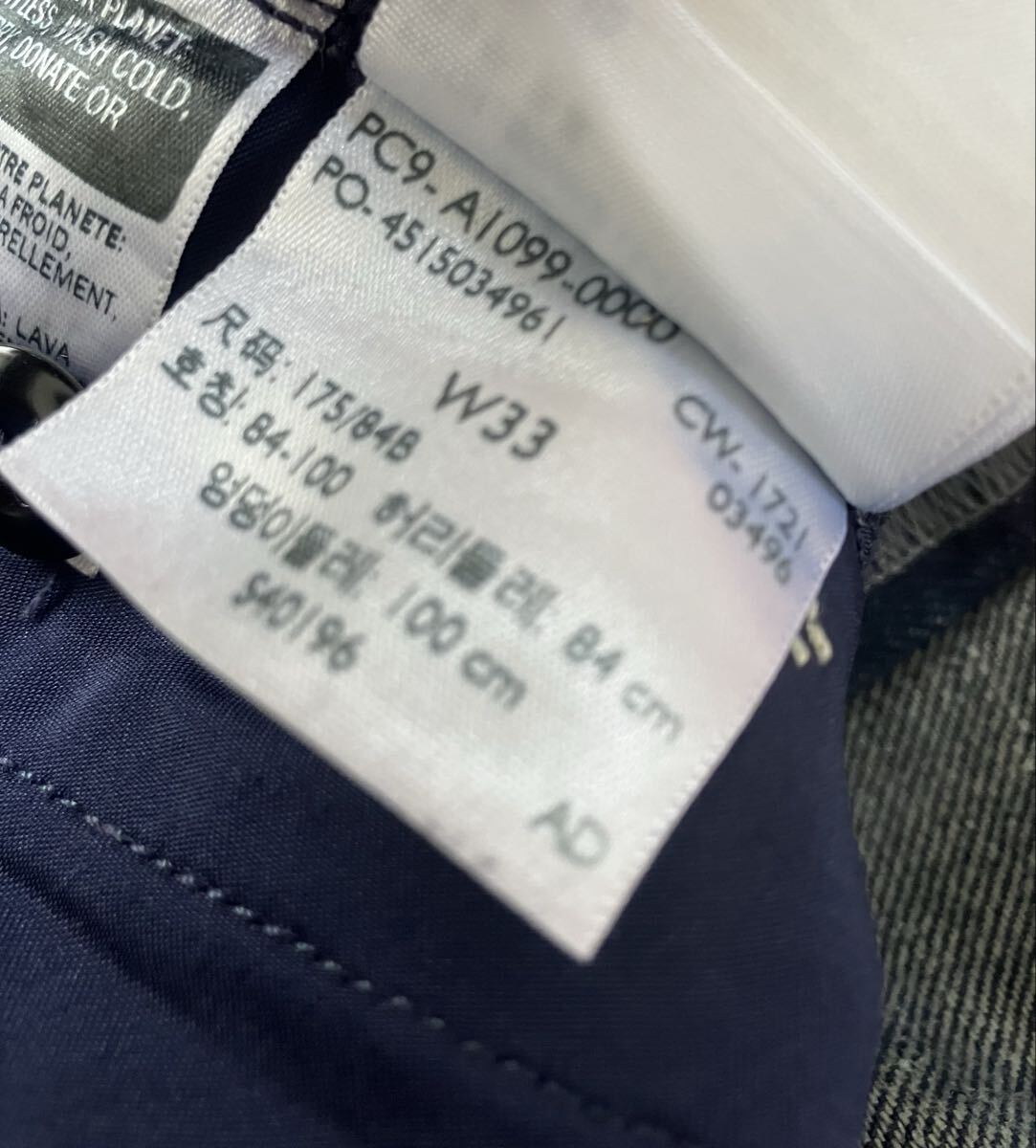 素人採寸ですが、ウエスト90cm、股上35cm、ワタリ31cm、股下67cm、裾幅24cmです。