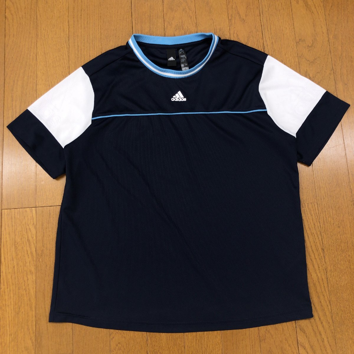 美品 adidas アディダス AEROREADY 吸水速乾 ドライ トレーニングシャツ L 濃紺 ネイビー 半袖 ジャージ Tシャツ スポーツ レディース 婦人