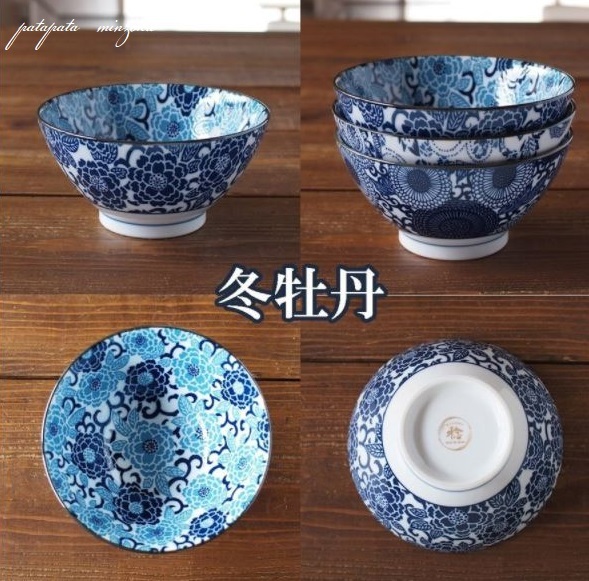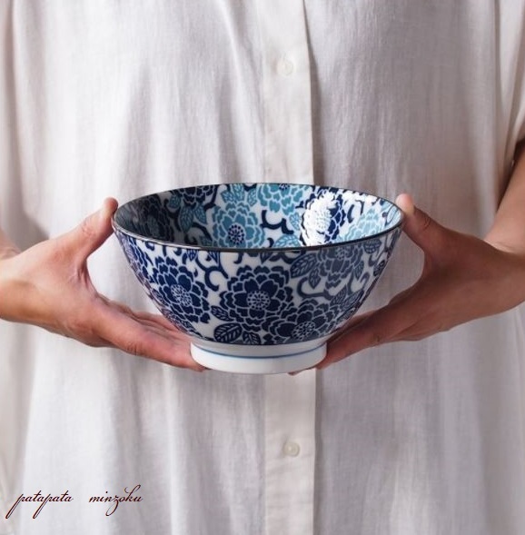 美濃焼 紺青 冬牡丹 反型6寸丼 どんぶり 丼 18.5cm 多用丼 軽量 磁器 陶器 パタミン カフェ そば うどん ラーメン 和食