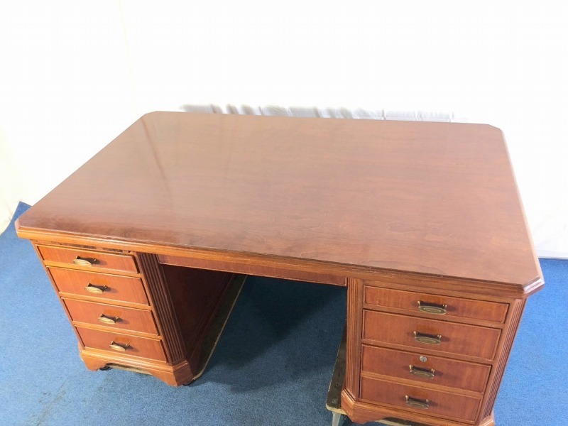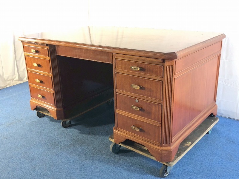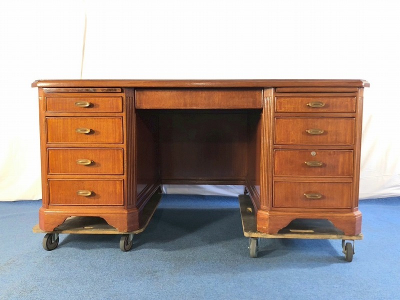 ・ 重厚感がありアンティーク家具としてもインテリア性が高い両袖デスクです。