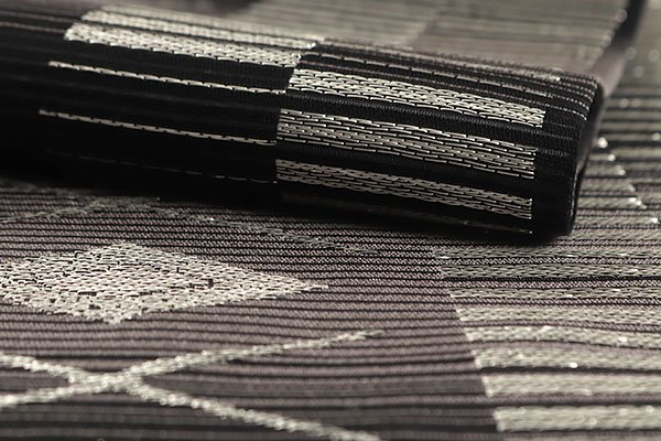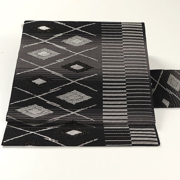 状態・素材 | 新品 仕立て上がり 絹88% ポリエステル・分類外繊維(和紙)12% 名古屋帯仕立て | ||