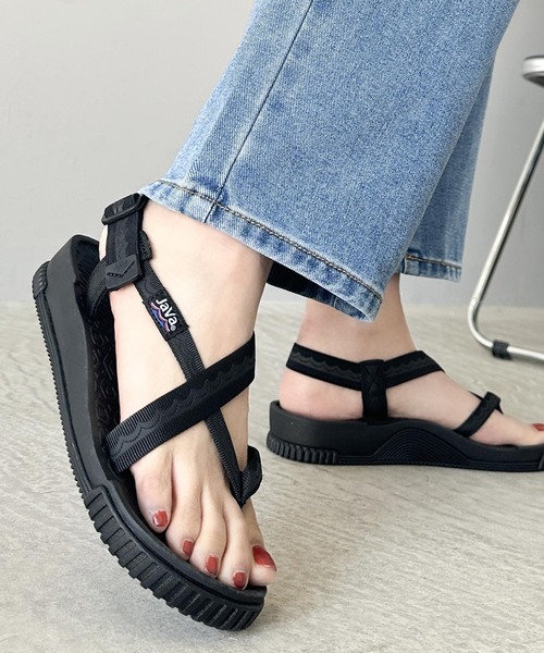 参考商品名:《Javaジャバコラボ》大人のこなれ感は足元から。クロスストラップゴムホールド機能付きサンダル