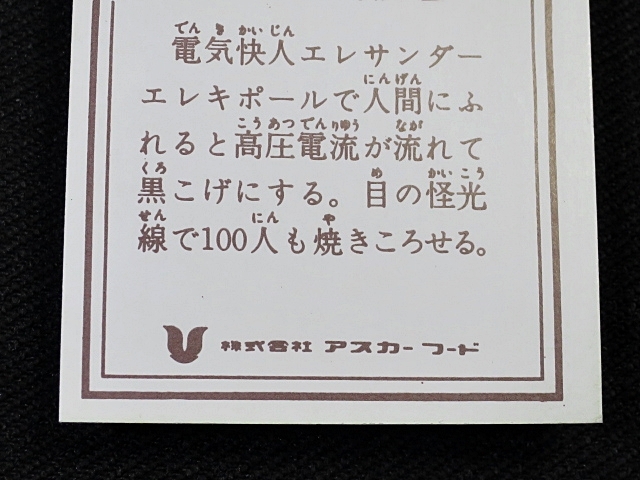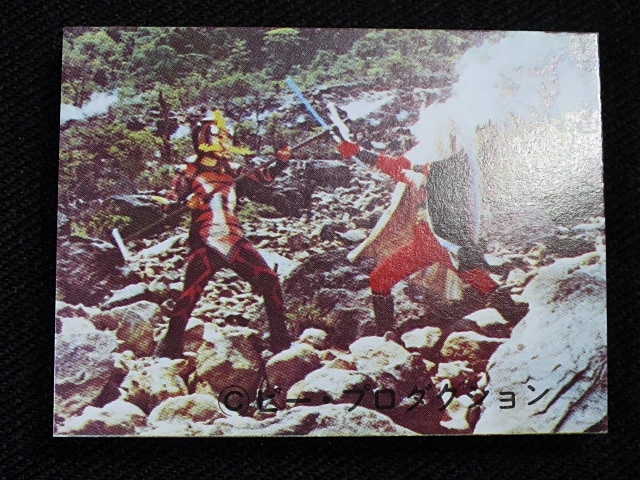 ミニカード_快傑ライオン丸__アスカフード バラ売り 1枚 ・メーカー:アスカーフード ・サイズ:6.7cm x 5.0cm ・製造年:1972年、放送当時にアスカーのダブルスナックのおまけカード ・構成:1-60番、AL1種 ・状態:中古扱い 〓参考項目〓 ・ 原作: うしおそうじ ・ 企画: うしおそうじ 別所孝治(フジテレビ) ・ 脚本: 高久進、若槻文三、田村多津夫、柏倉敏之、他 ・ 監督: 石黒光一、安藤達己、土屋啓之助、曽我仁彦、樋口弘美、中西源四郎、大塚莞爾 ・ 出演者: 潮哲也 、九条亜希子 、梅地徳彦 、戸野広浩司福島資剛 、 ・ 声の出演: 小林清志 、 ほか ・ ナレーター: 篠原大作 ・ 音楽: 小林亜星 ・ プロデューサー: 鷺巣富雄、篠原茂、別所孝治 ・ 制作: ピー・プロダクション ・ 放送期間: 1972年4月1日 - 1973年4月7日 ・ 回数: 54回 | ||