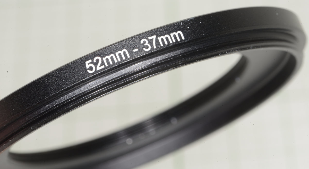 フィルター径52mmのレンズに37mmのフィルターを使用するためのアルミ合金製リングです。