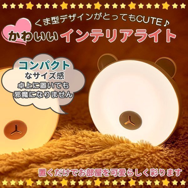 熊型デザインがとっても可愛いインテリアライト。置くだけでお部屋を可愛らしく彩ります。