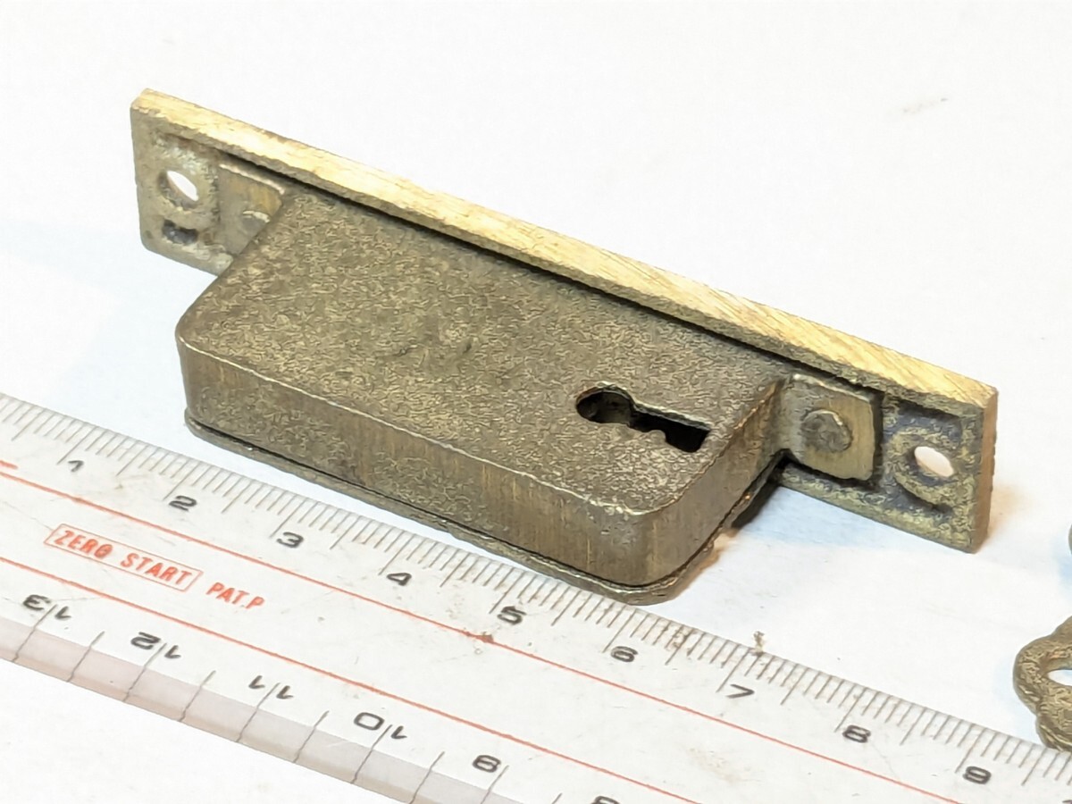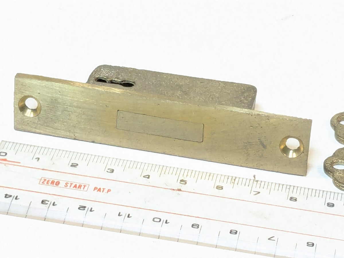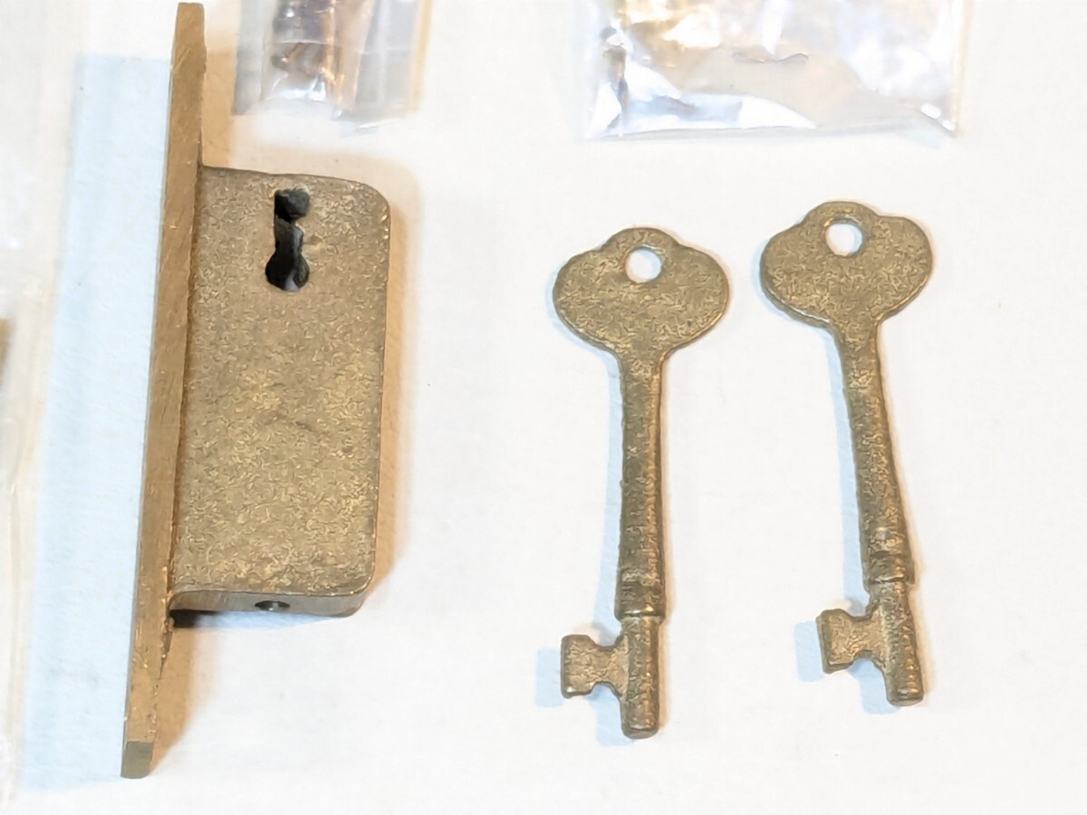 送料無料 昭和レトロ 真鍮レトロ 本締り錠 ビス付 鍵2個付き長期保存未使用品