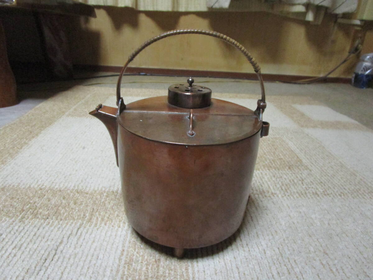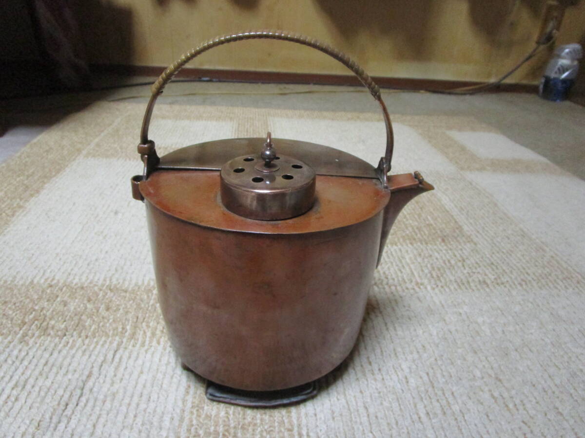 茶器 茶道具 煎茶道具 銅器 銅製 湯沸かし 本体直径約16.7cm高さ約15.5cm 持ち手高さ約24.5cm 重さ約1.3㎏ 追加画像有