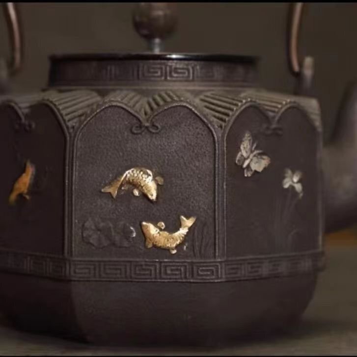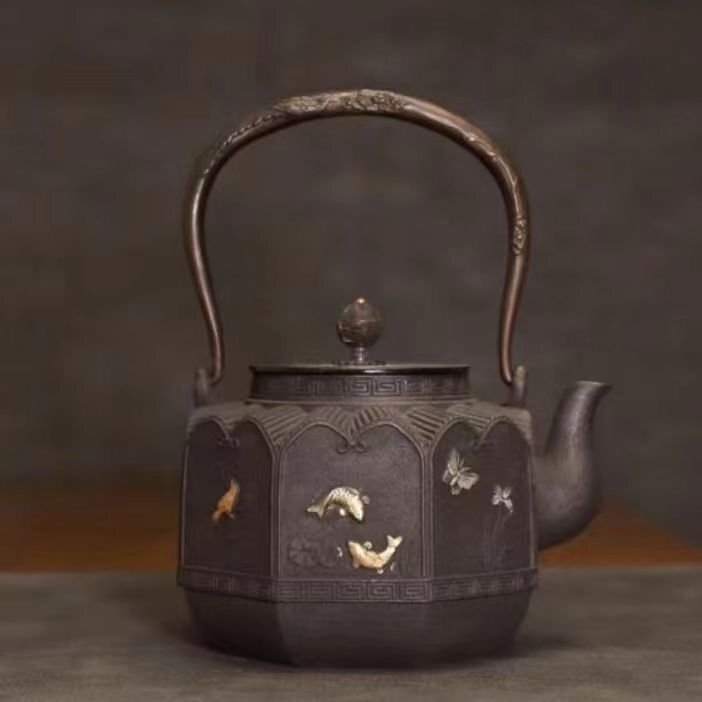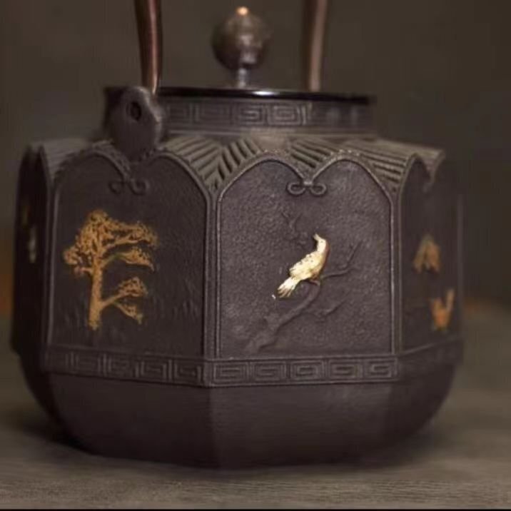 鉄器 鋳鉄製 老鉄瓶 提梁壺★新品 茶道具対応 鉄やかん 鉄分補給 鉄びん 1200ml