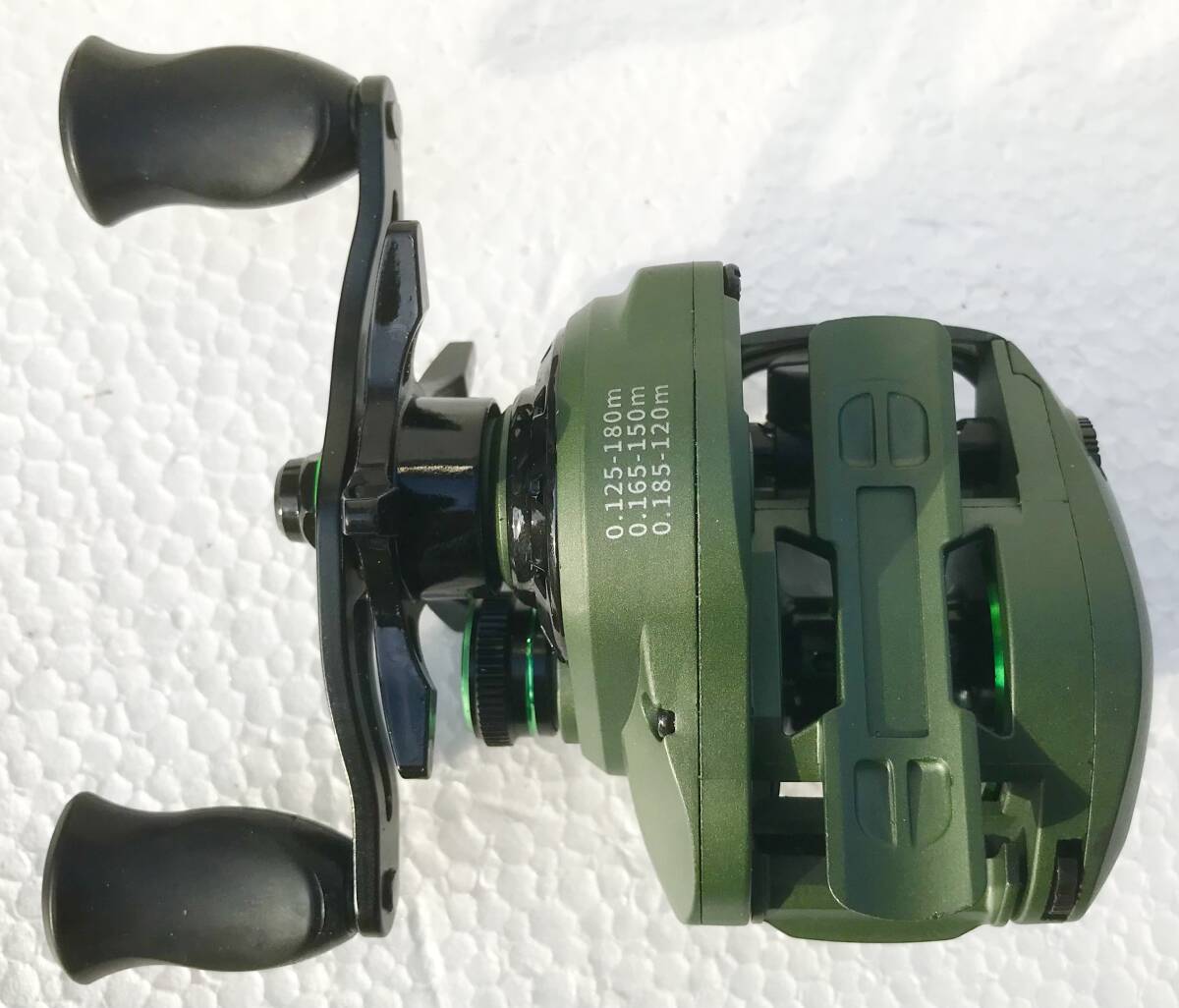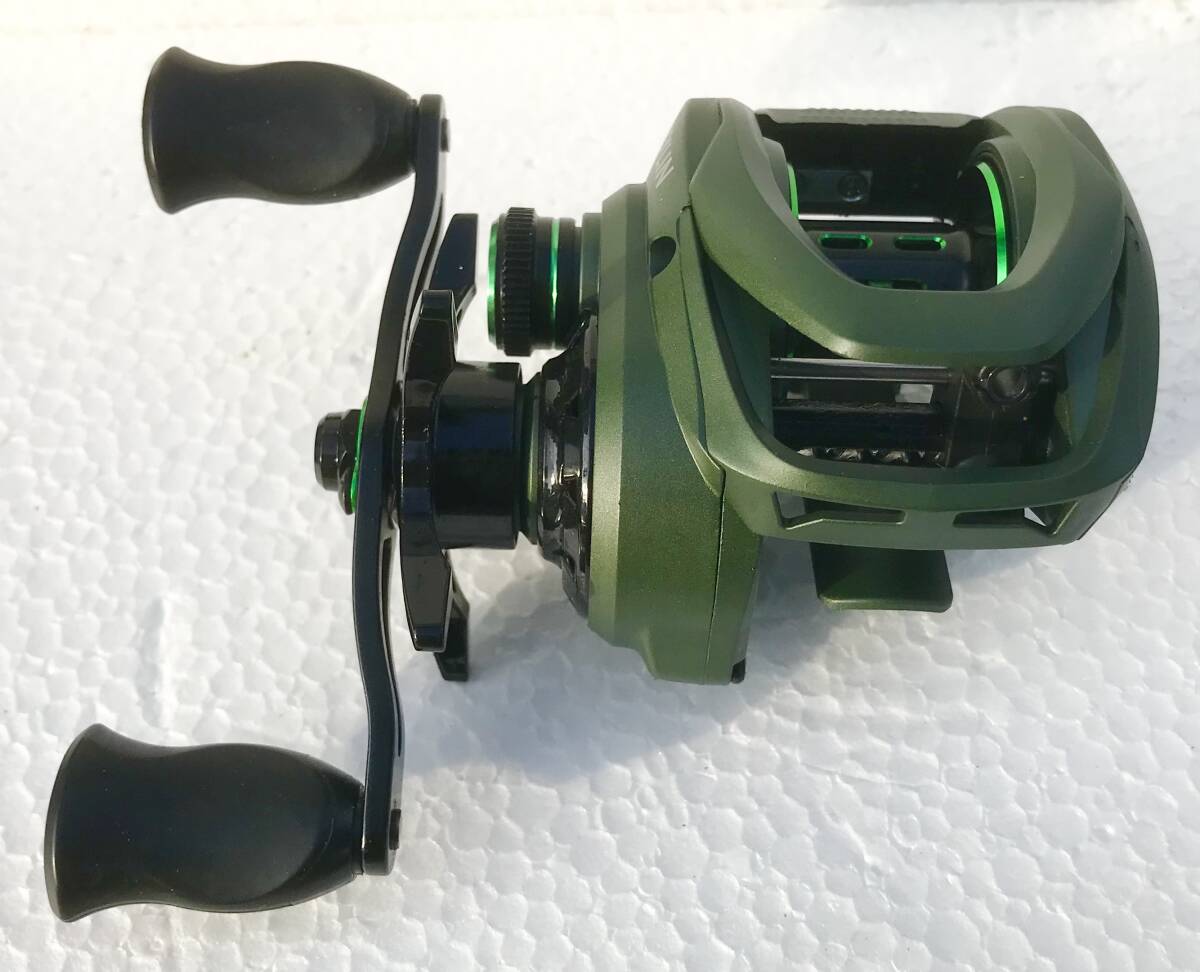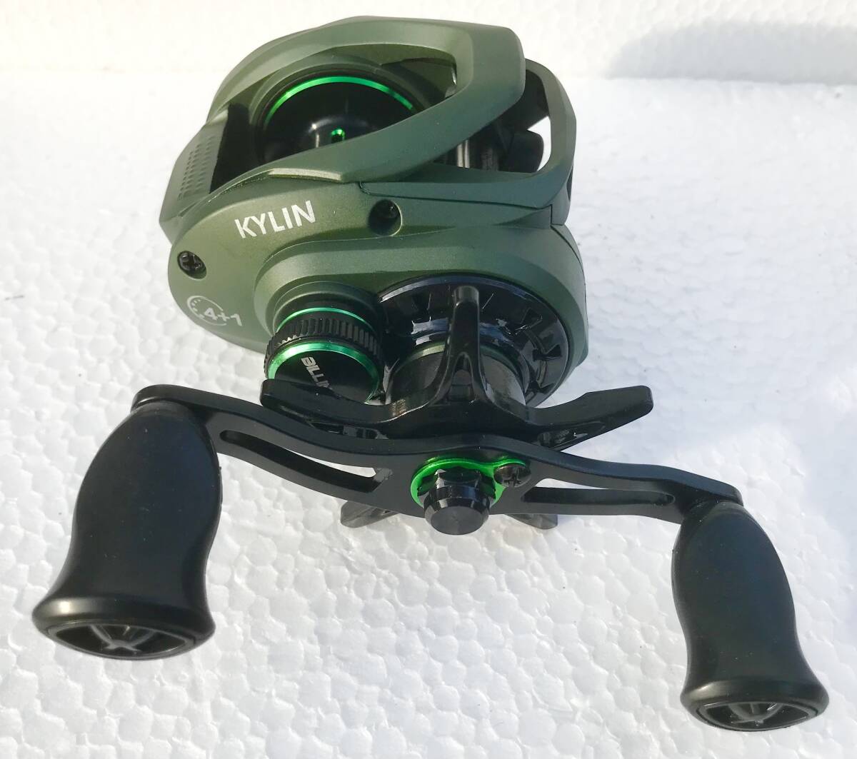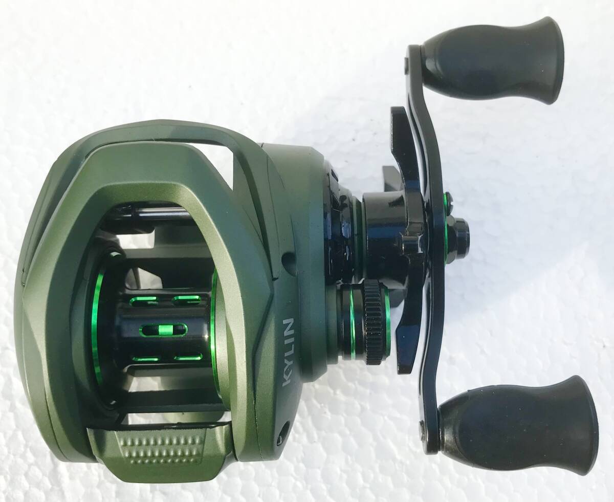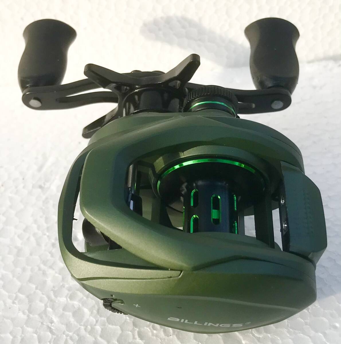 写真のBILLNNGSベイトキャスティングリールKYLIN200-Mマットモスグリーン右ハンドル(新品未使用)を発送します(送料無料)。