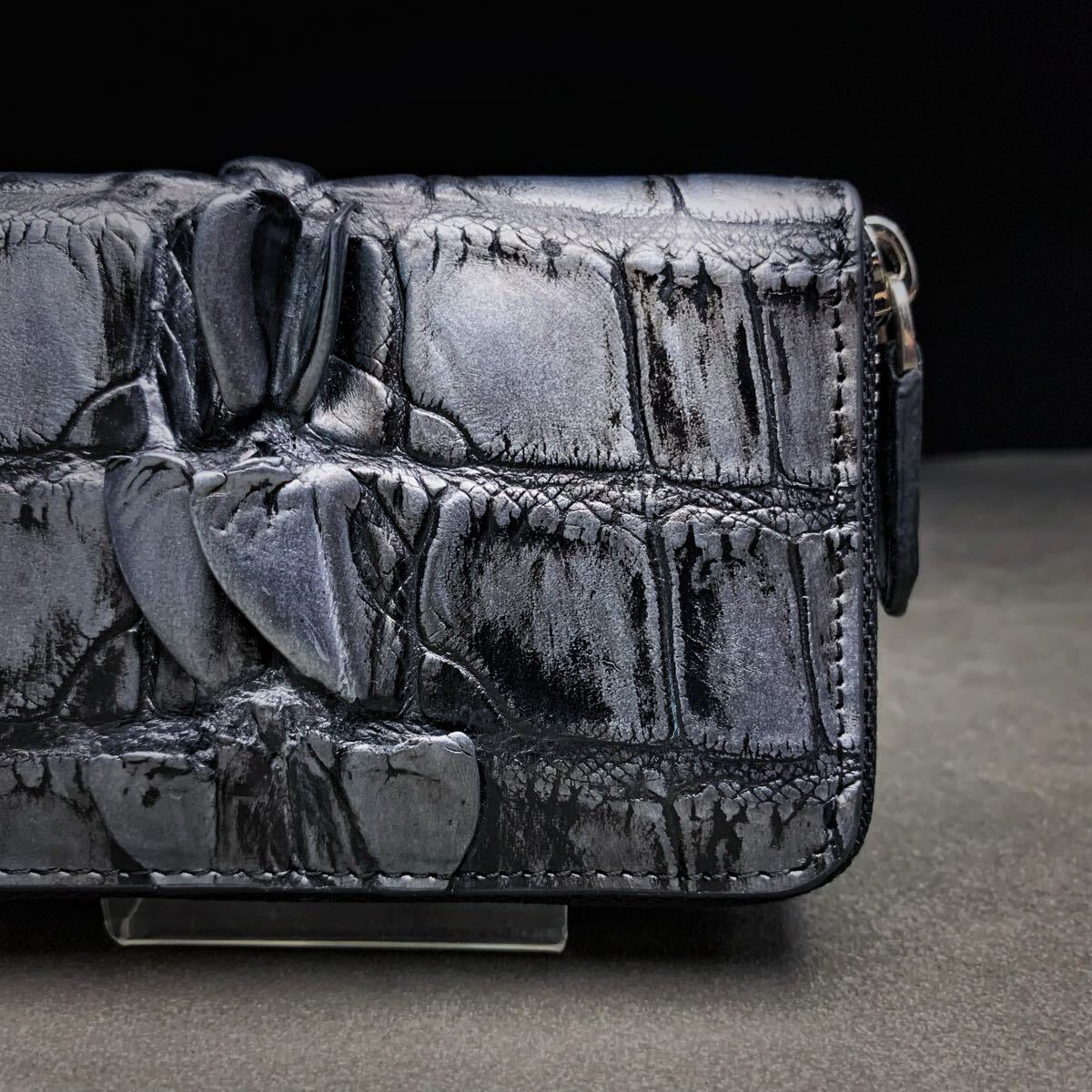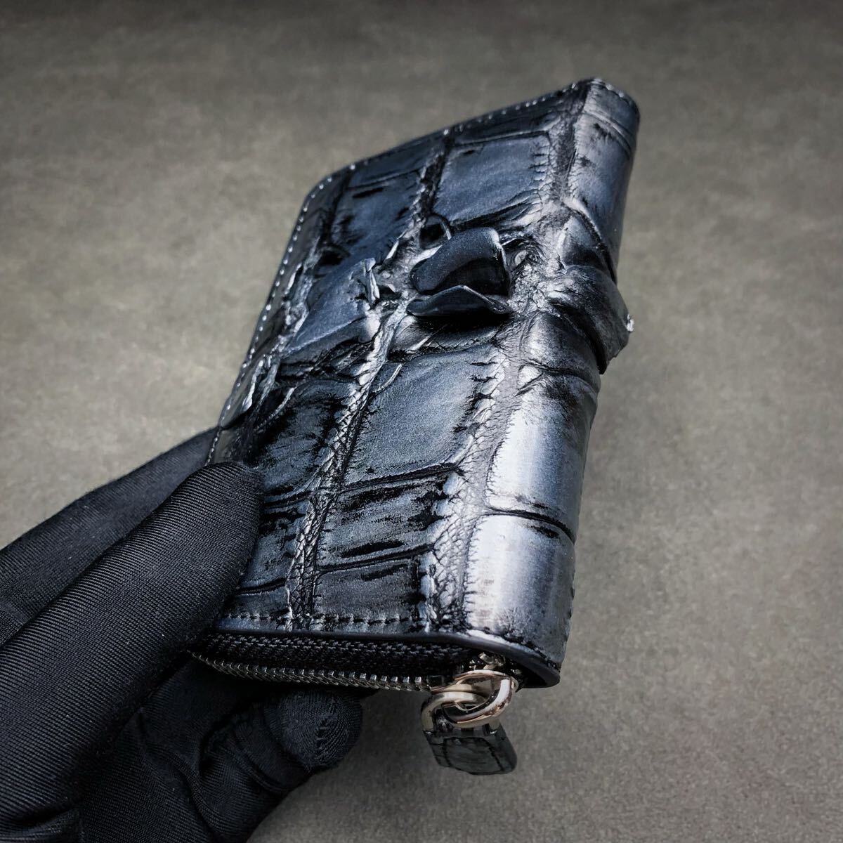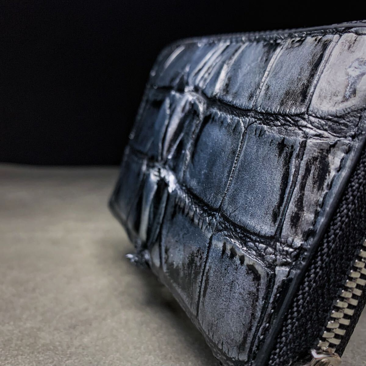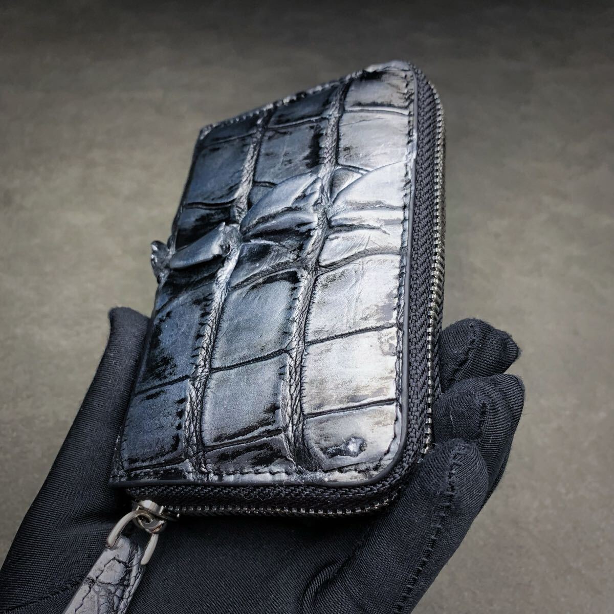 クロコダイルと呼ばれている品種のワニ革は人気が高く、独特の模様と凹凸が魅力で、高級ブランド品を中心にクロコダイルが多く使われています。今回はワニ革の代表格である<シャムクロコダイル>の腹革のラウンドファスナー財布を出品します。