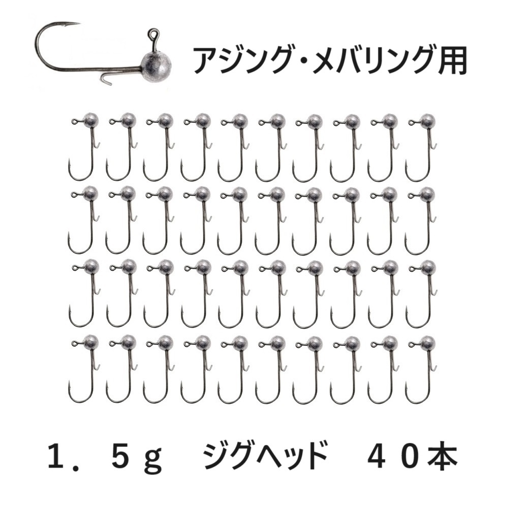 メバリング用 ジグヘッド 大量 1.5g 40個セット ワームキーパー付 アジング 根魚 ロックフィッシュ ライトゲーム 初心者にも 送料185円~