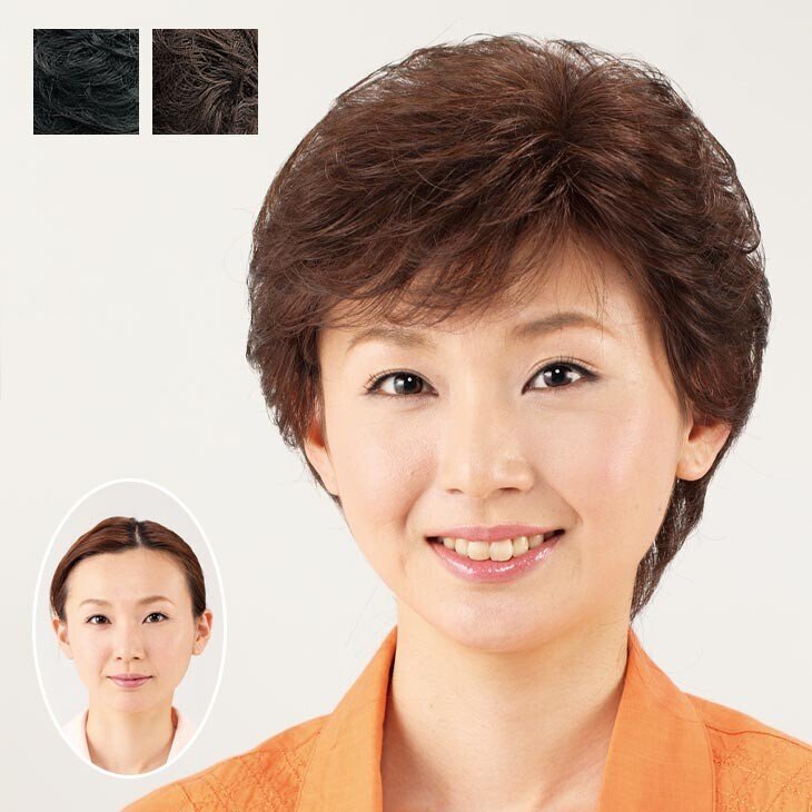 | 即決可@新品人毛100%カールショートおしゃれかつら ピン付き/栗色 | ||||||||||||