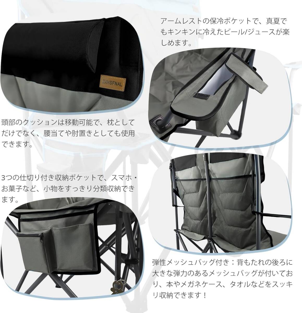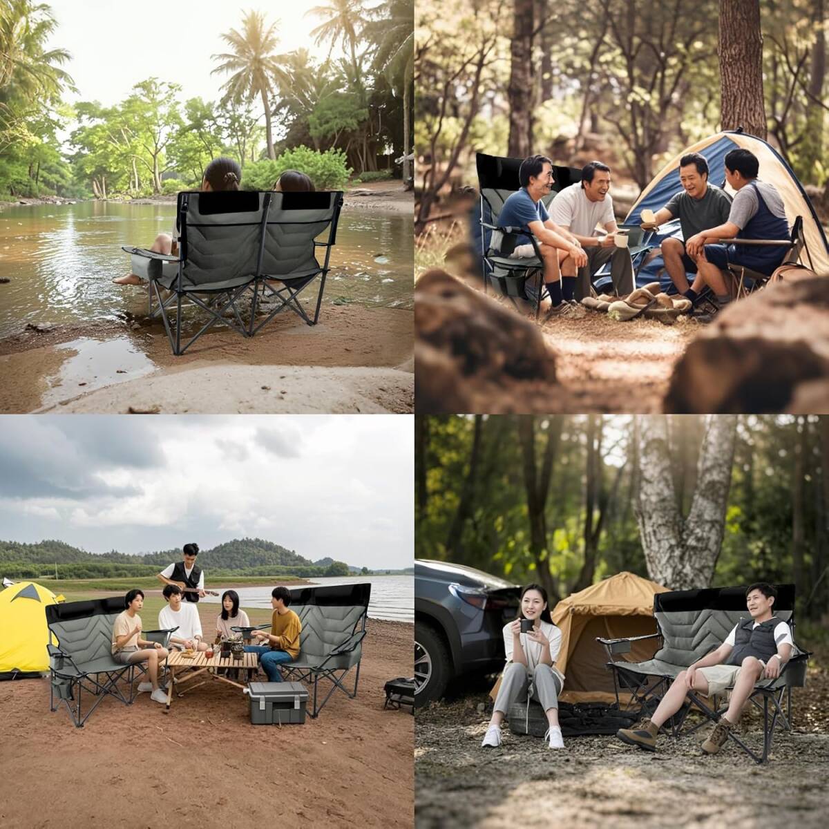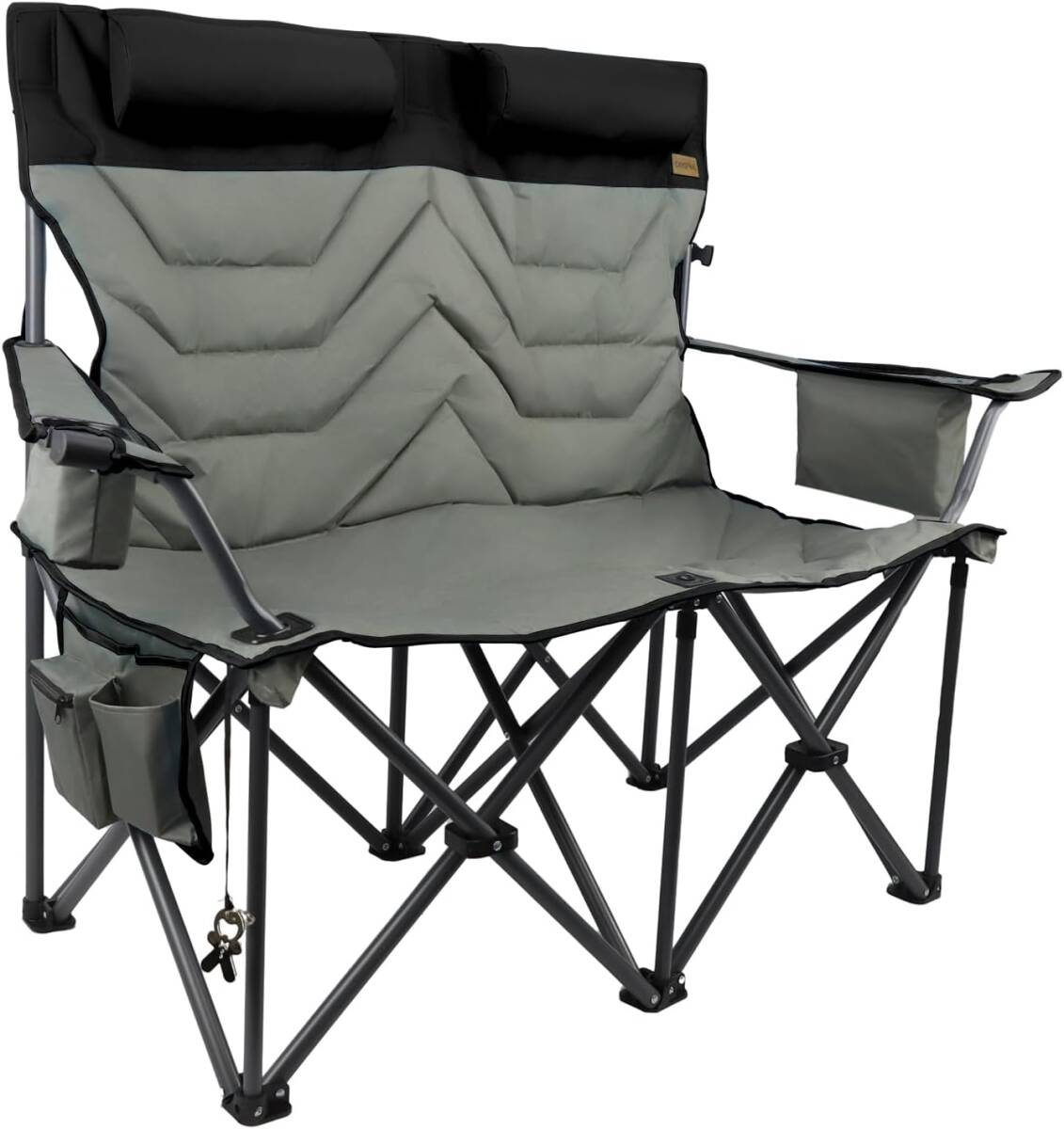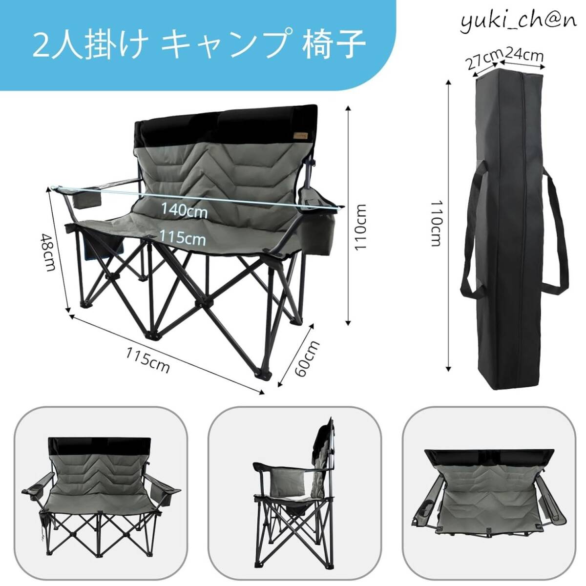 キャンプ 椅子 2人掛け アウトドアチェア 折りたたみ コンパクト 携帯便利 カップホルダー&クーラーボックス 耐荷重300kg Gray+Black