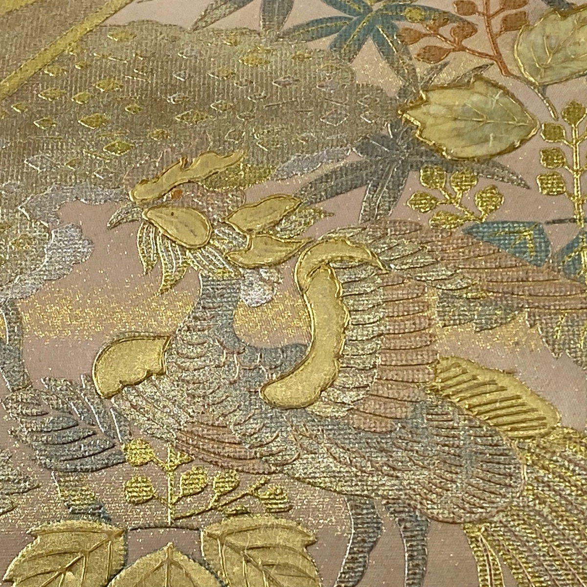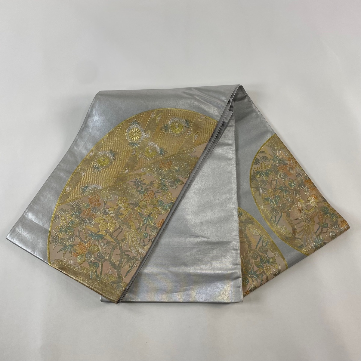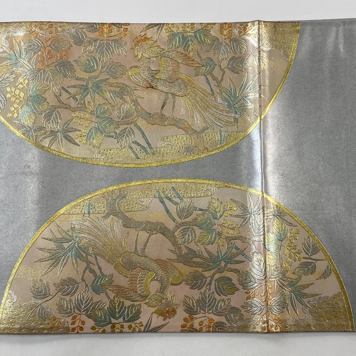 | 袋帯 秀品 鳳凰 菊 螺鈿 金銀彩 灰色 お太鼓柄 正絹 【中古】 |