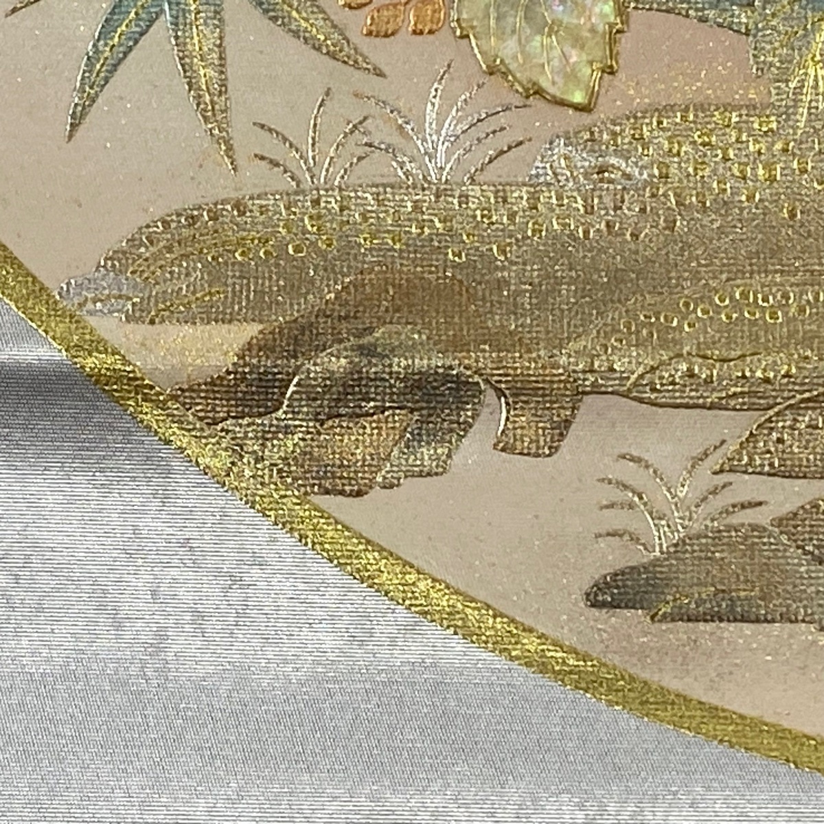 | おめでたい席に相応しい意匠の袋帯でございます。 格式高いお席にもお使いいただけますので、お見逃しのないようお願いいたします。 締め跡がございます。 中無地とお太鼓垂先間にシミ、中無地に線シミ、お太鼓所々と前柄所々に金銀彩の変色がございます。 裏地所々にシミがございます。 リユース品としては良い状態で、まだまだご活用頂けると思われます。 ※なお、厳しく商品の状態確認を行っておりますが、記載の汚れ以外にも見落とし箇所がある可能性がある旨ご了承いただけますと幸いです。 沢山の商品の中からご覧いただき誠にありがとうございます。 |