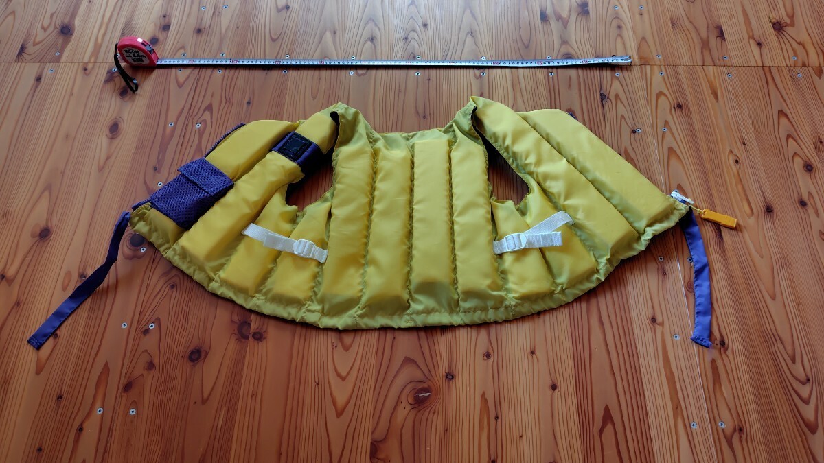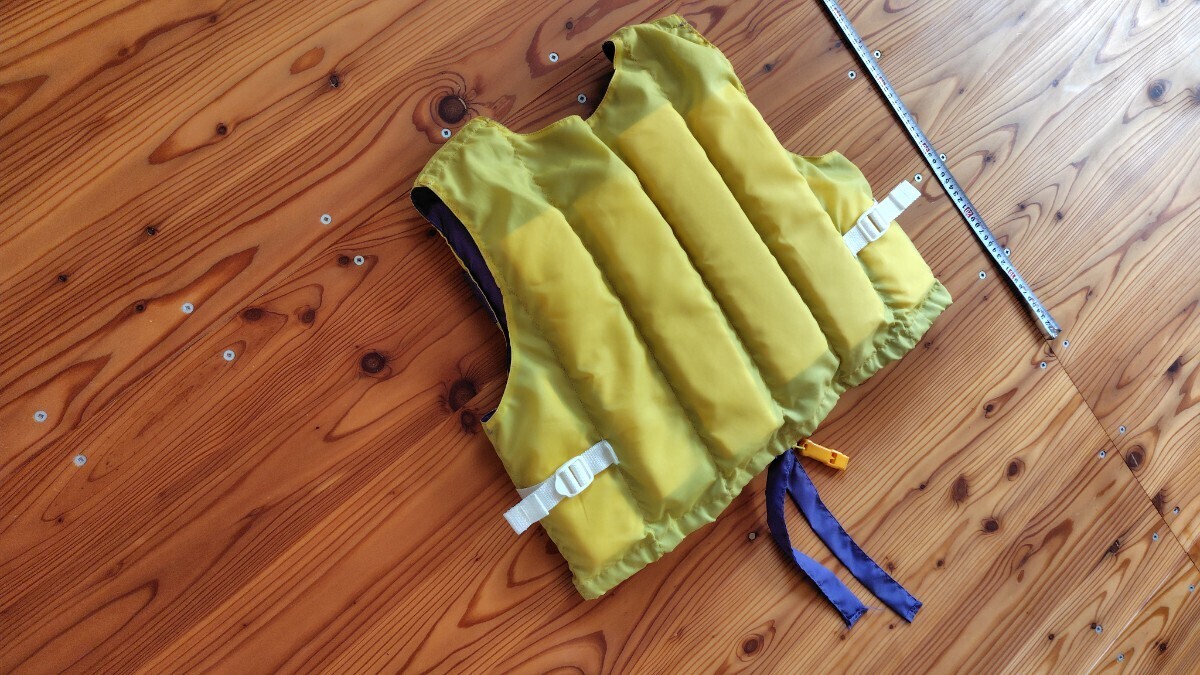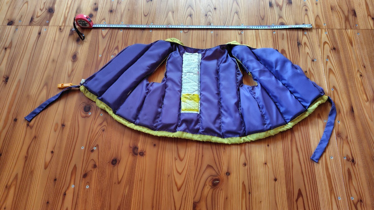 ライフジャケットの浮体は空気注入ではなく、その大きさは変化しません。