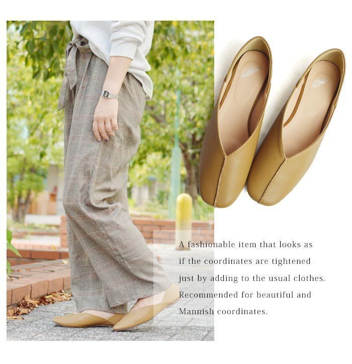 レディース 2way フラットシューズ かかと踏める パンプス バブーシュ Vカット センターシーム 大人 カジュアル 靴 9850