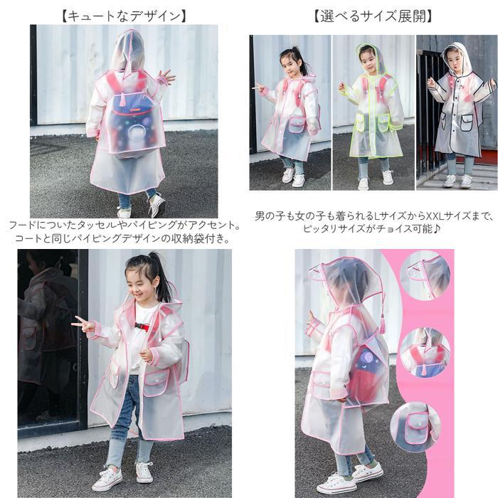 商品説明 | ・・【雨の日も楽しく!】 ・雨の日のお出かけや通学通園に便利なキッズ用レインコートが登場! ・【リュックを背負ったままでもOK】 ・コートの背中部分には、リュックやランドセルを背負ったまま着用できる背マチ付き。 ・【小さな子でも着脱簡単】 ・小さなお子様でも脱ぎ着がしやすい、スナップボタン仕様。 ・【前が見やすい透明窓付き】 ・フードのツバ部分には透明窓が付いているので、視界を遮る心配なし! ・【便利なポケット】 ・両サイドにはミニタオルなどが入れられるスナップボタン付きのポケットを配置。 ・【キュートなデザイン】 ・フードについたタッセルやパイピングがアクセント。コートと同じパイピングデザインの収納袋付き。 ・【選べるサイズ展開】 ・男の子も女の子も着られるLサイズからXXLサイズまで、ピッタリサイズがチョイス可能♪ |
