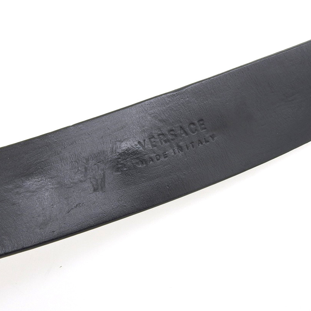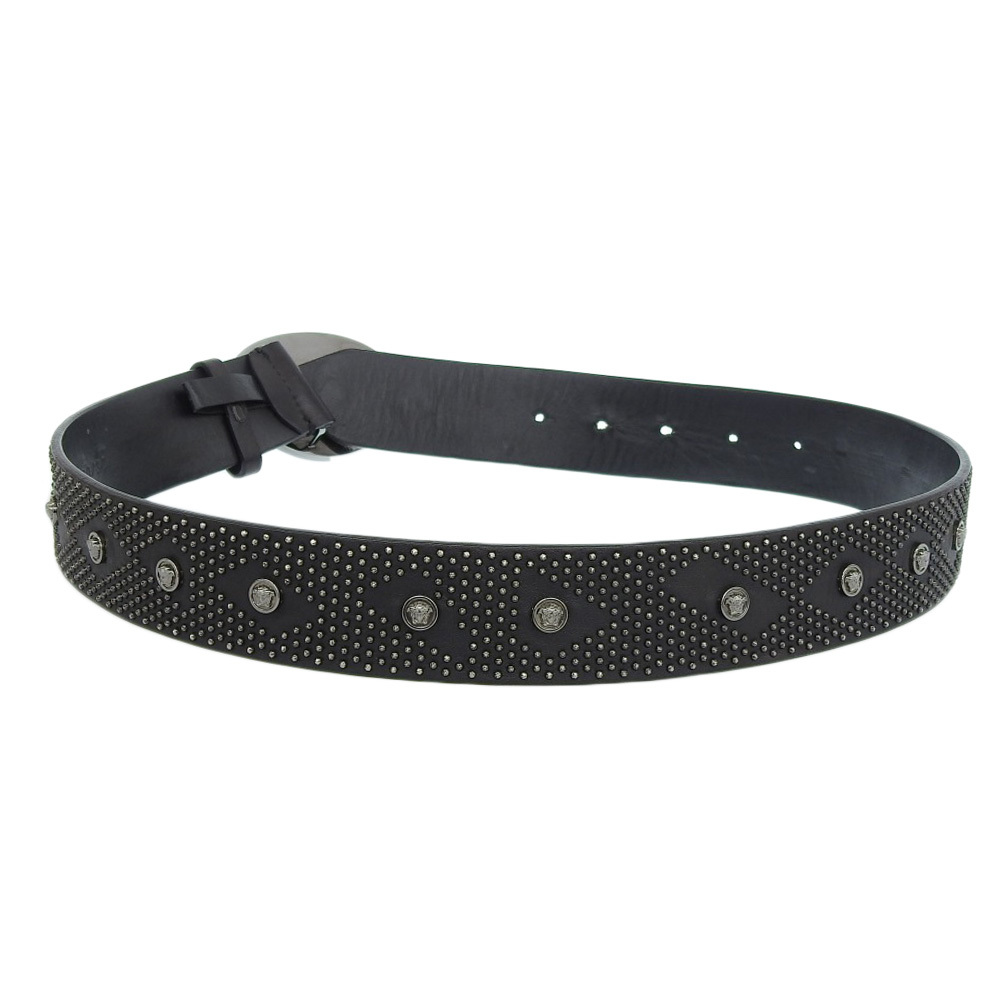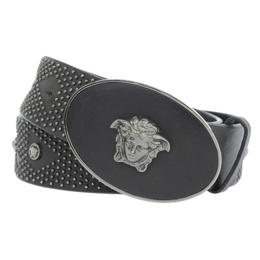 良品 VERSACE ヴェルサーチ メデューサ スタッズ レザーベルト ブラック