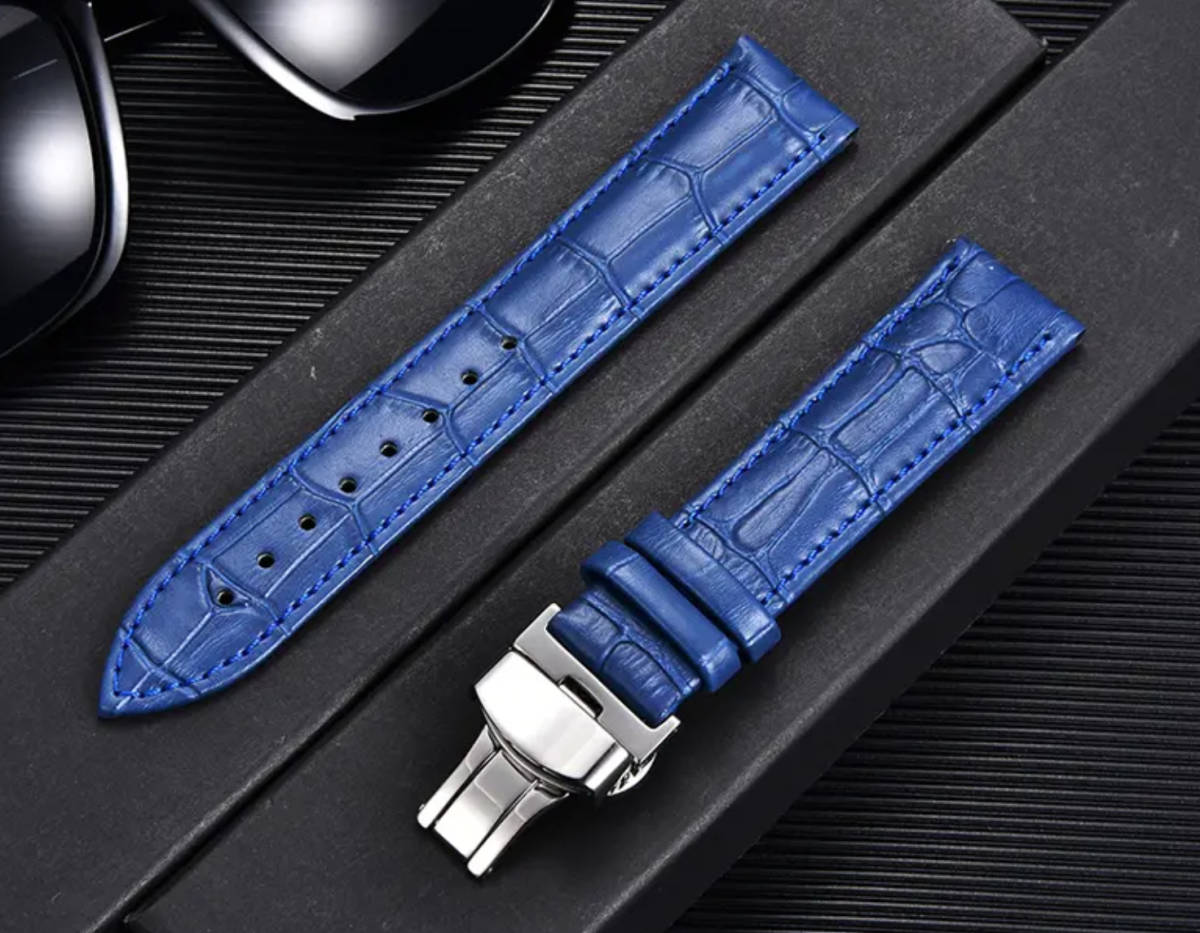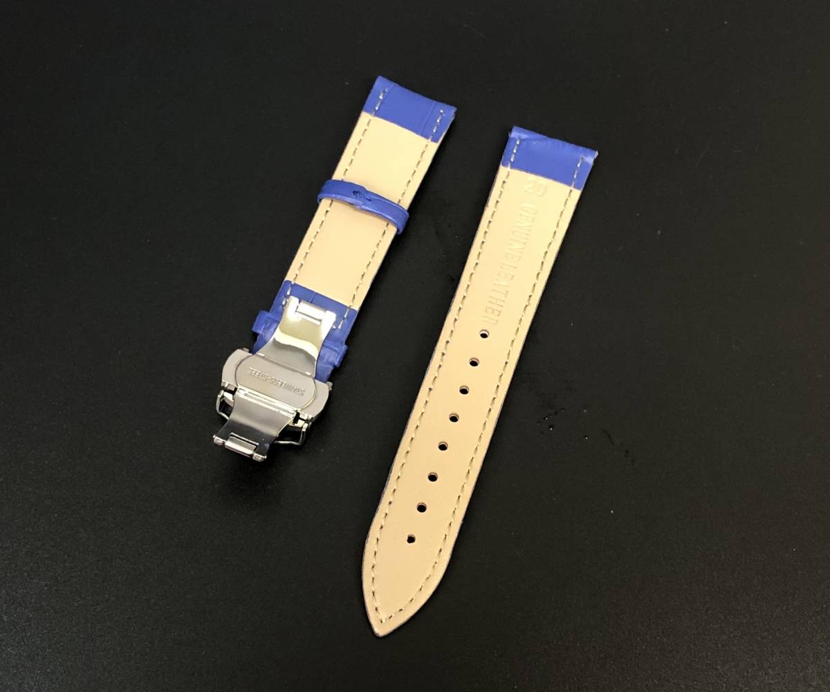 時計ベルト 腕時計ベルト クロコダイル型押し レザーベルト 時計バンド 替えベルト Dバックル レザー カーフ革 修理 20mm ブルー