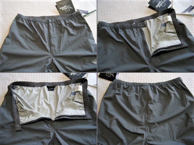 本体表地は軽量ナイロン素材、裏地はポリエステル素材。      さらっとしたソフトな生地で、中層ポリウレタンラミネート加工を施し、防水透湿機能に優れた  “Dual Force Strech”  を使用し、異次元のストレッチ性を持った3レイヤーのアウトドア用高機能レインパンツ・シェルパンツ。       急な雨天に対応した(着脱の容易を想定)長めのジップファスナー装備 【パンツ裾から膝上まで】。      縫製部はシームレステープテープ(止水)加工。    ウエスト部、パンツ裾部にドローコード装備。      収納袋付き。        モデル名  POLEWARDS   DUALFORCE EXTREME STRECH PANT         表記カラー GRY / グレー