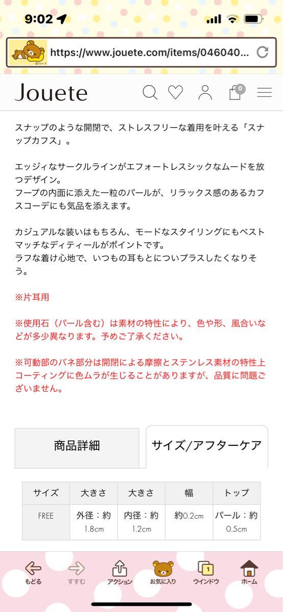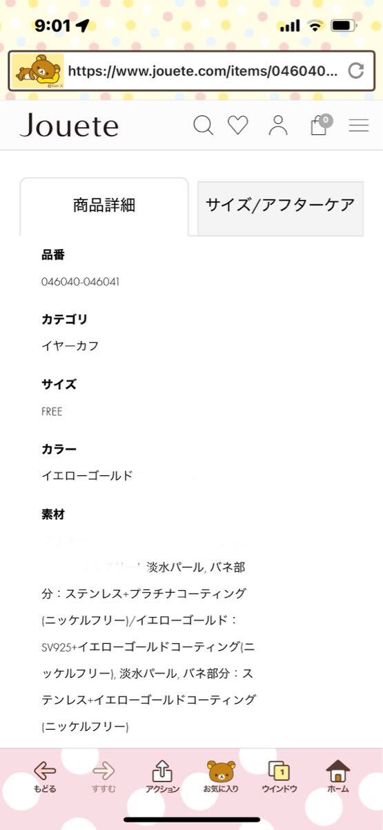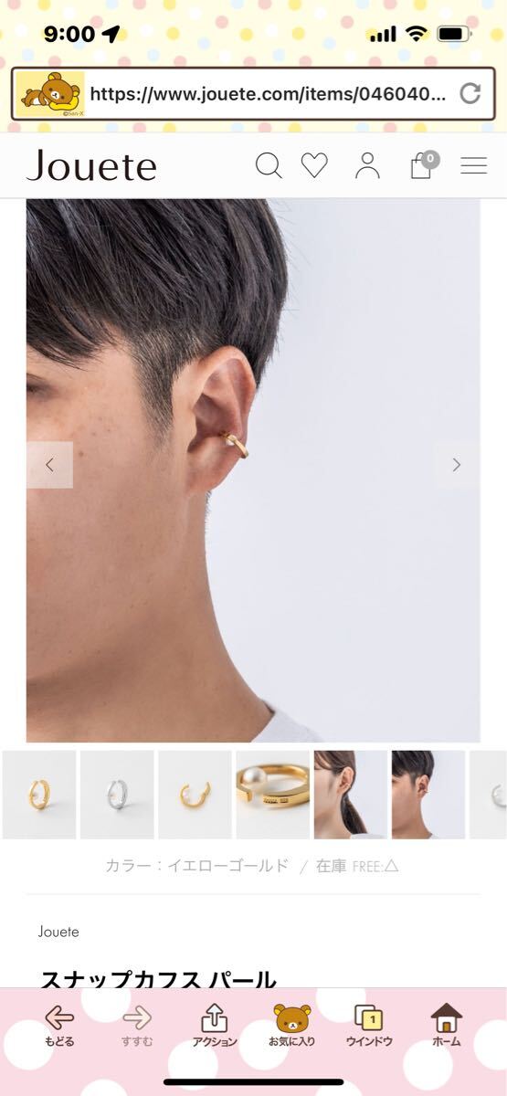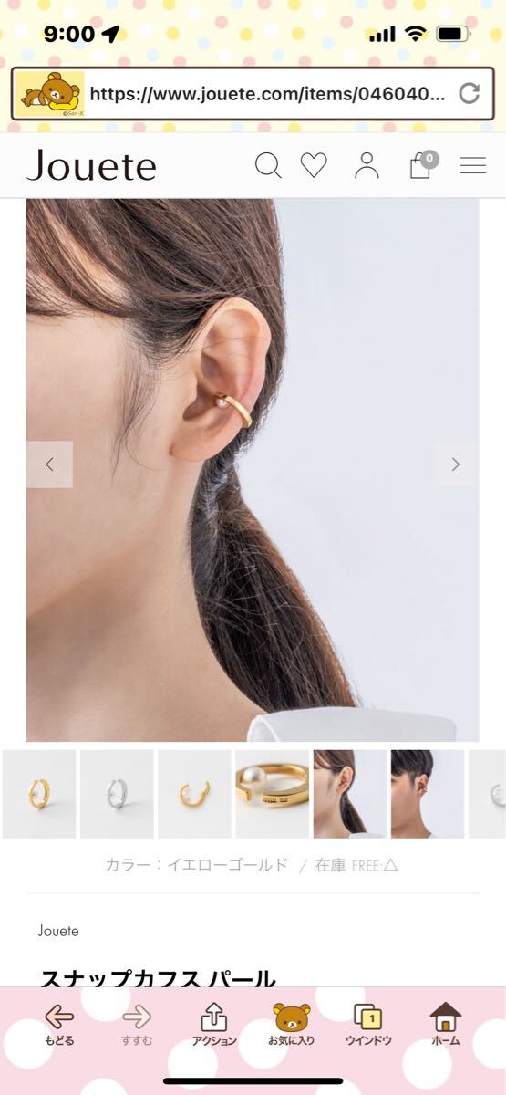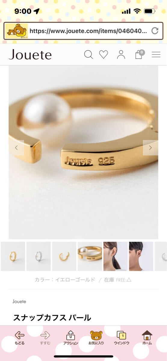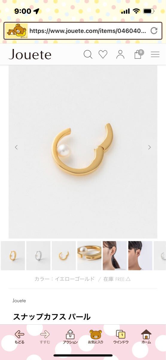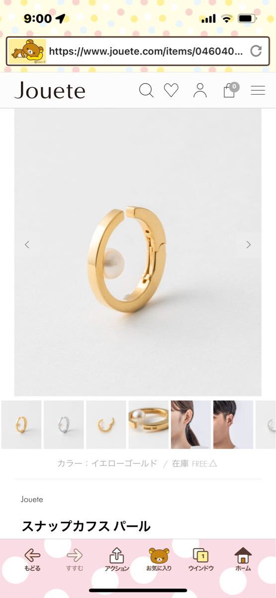 わぉ2025購入☆JOUETEジュエッテ☆パール付スナップイヤーカフYG☆美品
