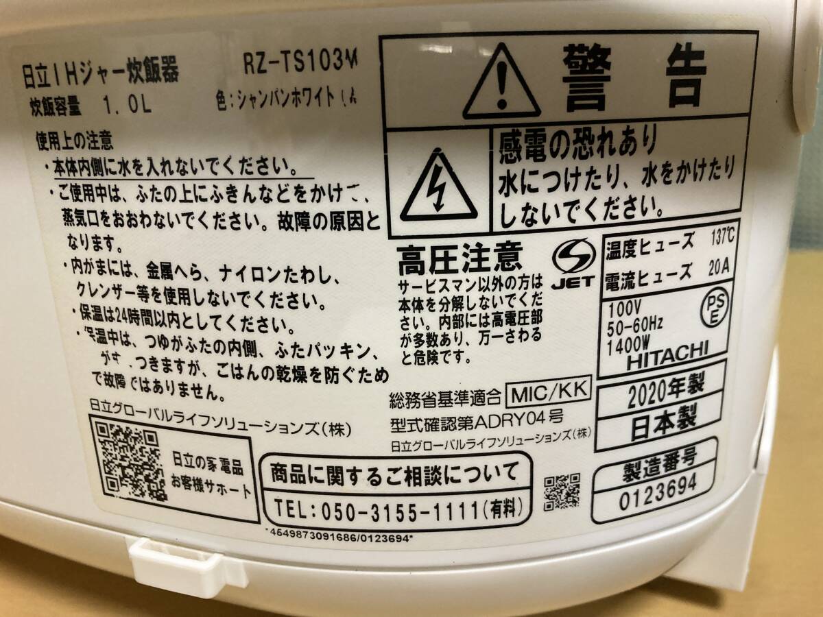HITACHI IHジャー炊飯器RZ-TS103M炊飯容量1.0L圧力釜