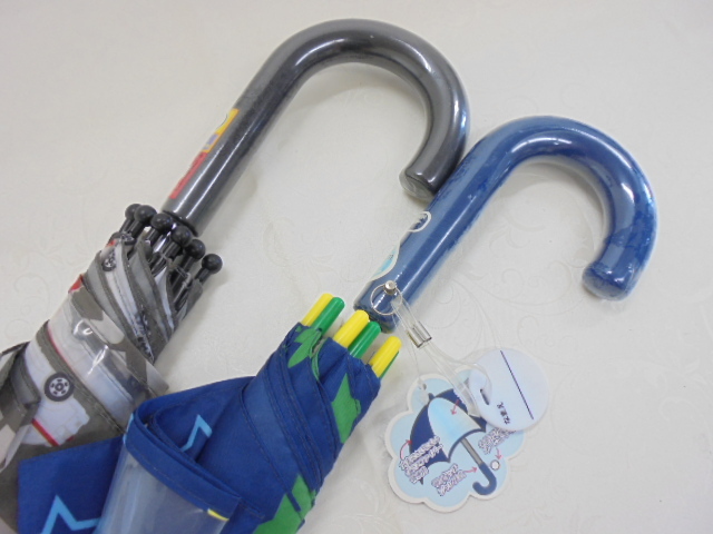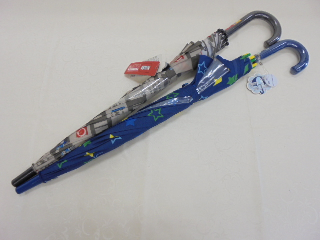 【KCM】JHKZ-15-2s★未使用・保管品★キッズ 子供用 『傘』 2本セット 50cm(対応身長115~125cm) ブルー系 透明窓 ジャンプ式 トミカ