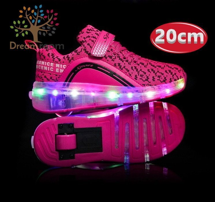 1スタ☆光る☆LED ライトアップスニーカー&ローラーシューズ 一体型 【K-166ピンク 20cm】夜間 スケート靴 反射材 ジョギング 自転車
