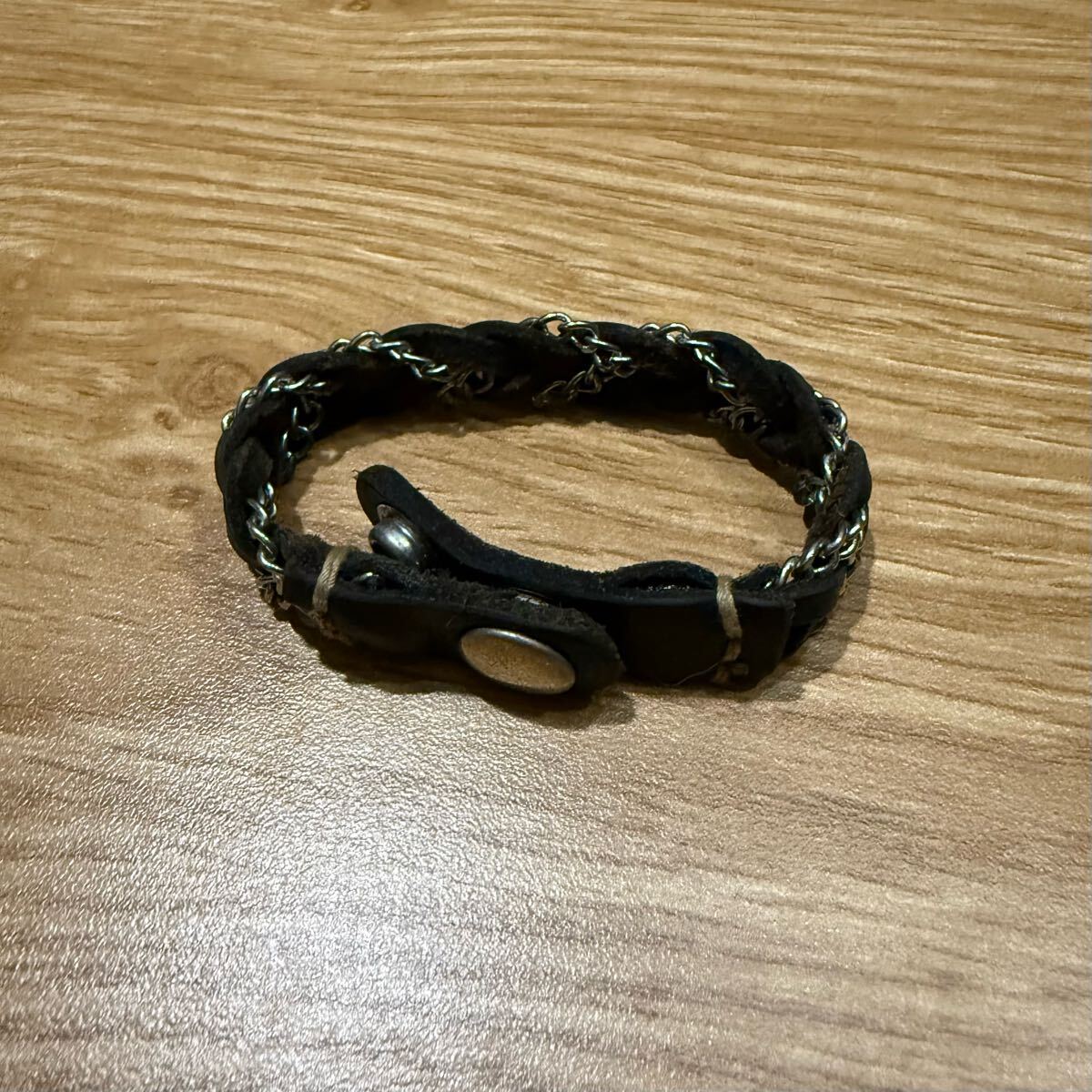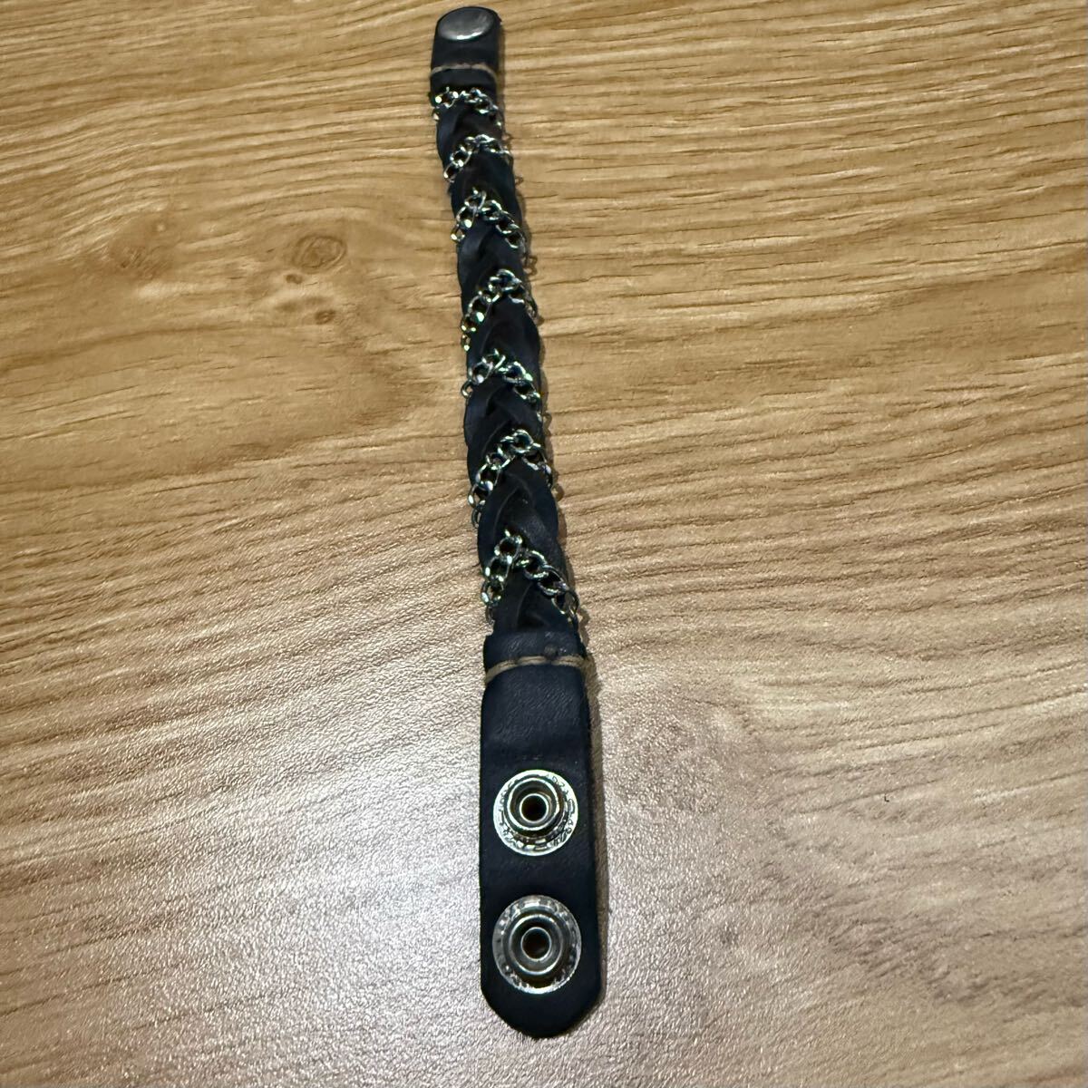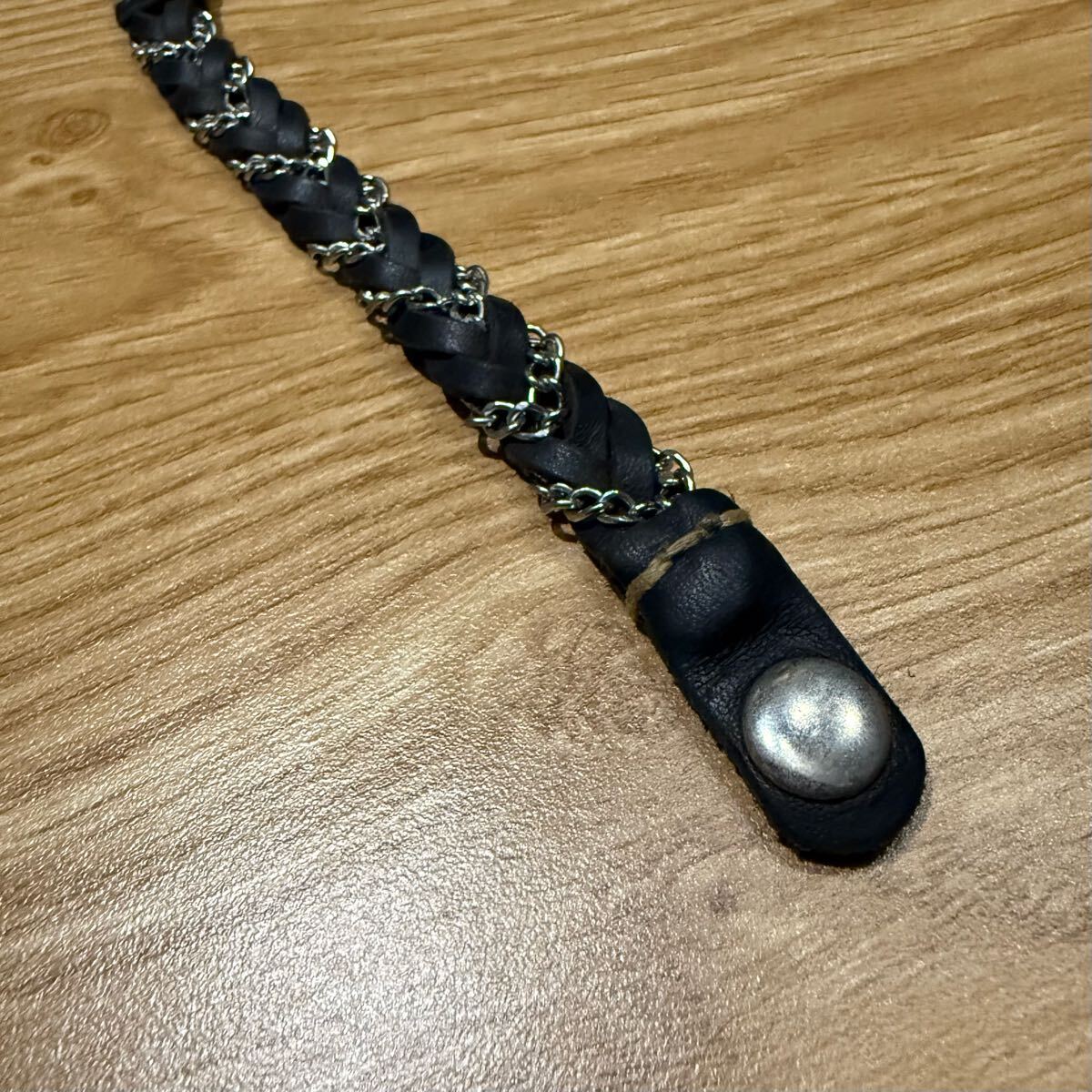 レザー チェーン メッシュベルト ブレスレット チェーンコンビネーション スナップボタン フリーサイズ