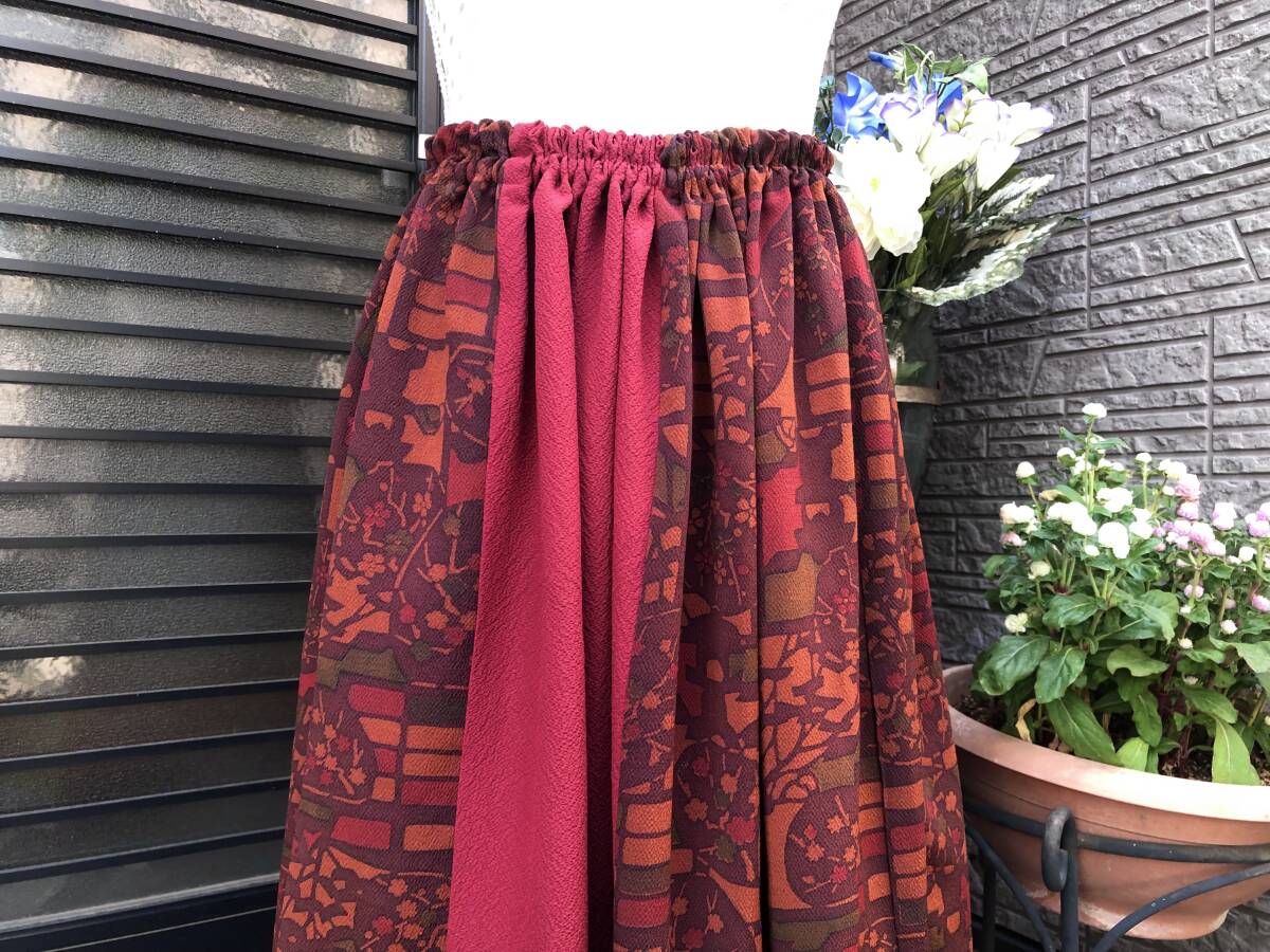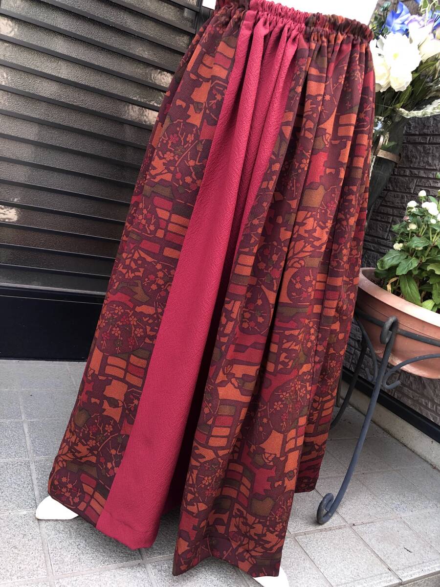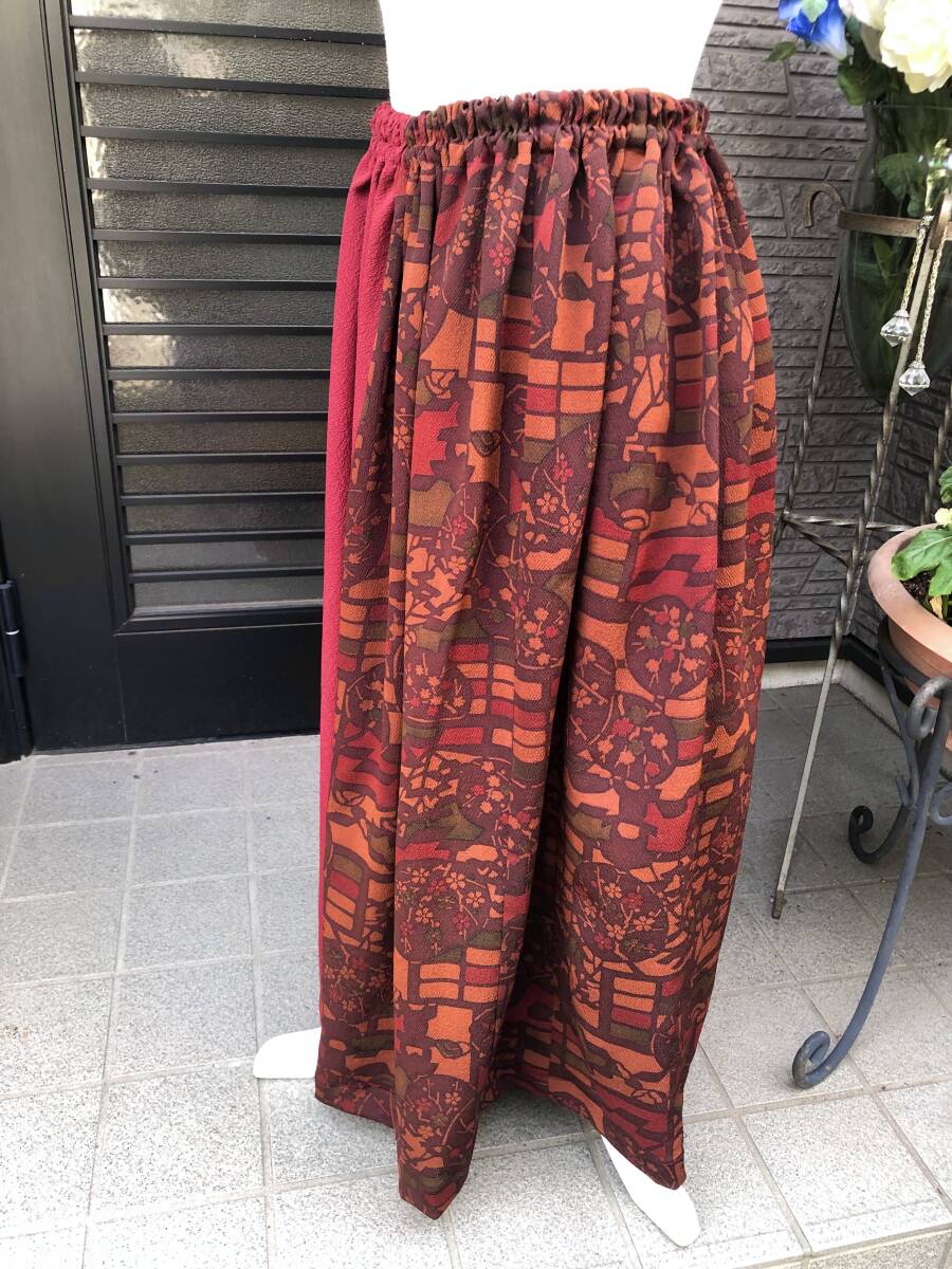 ハンドメイド 着物リメイク・和服リメイク ちりめん フレアスカート・ロングスカート 正絹 送料230円 秋色 美品