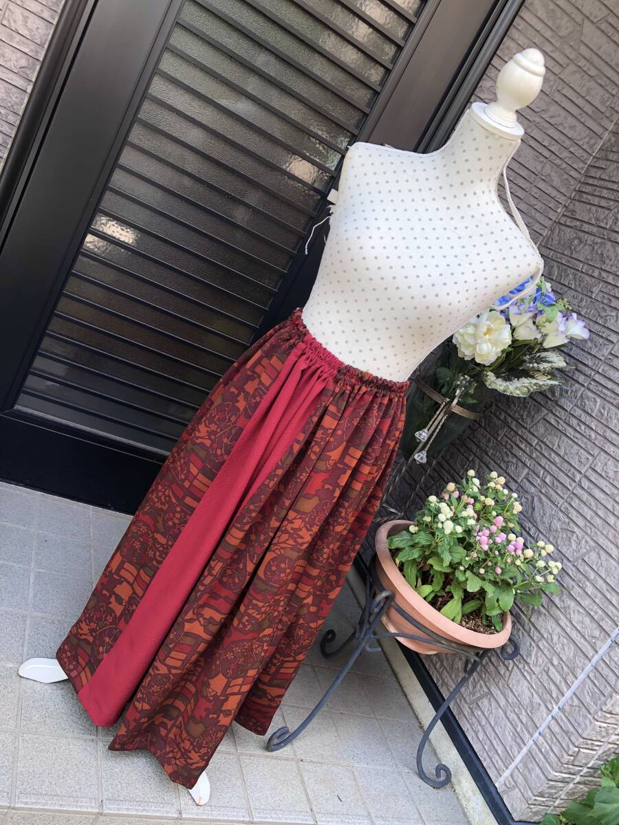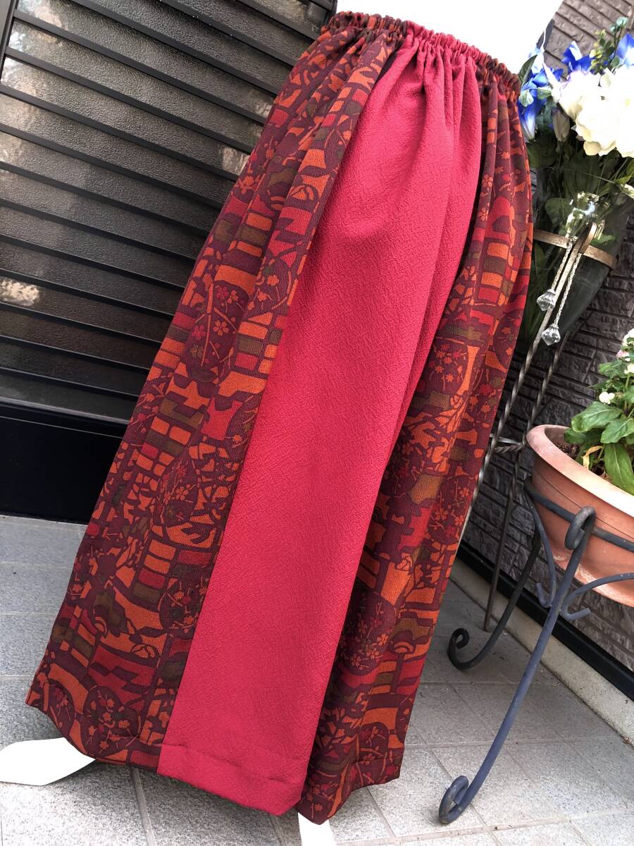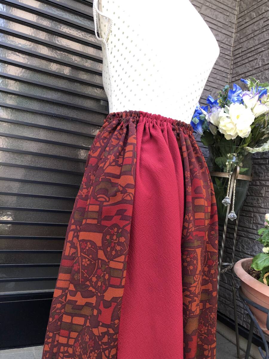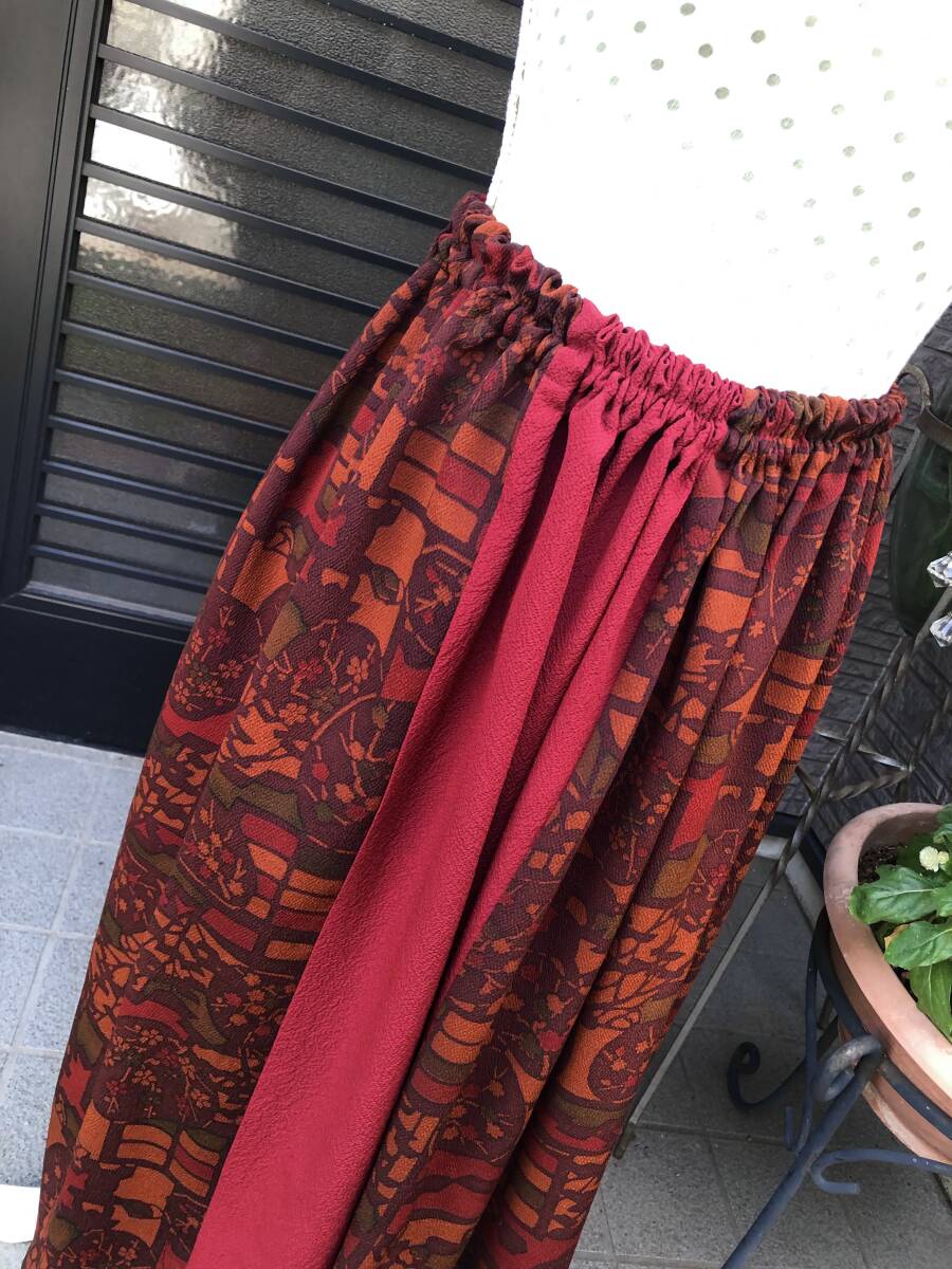 ハンドメイド 着物リメイク・和服リメイク ちりめん フレアスカート・ロングスカート 正絹 送料230円 秋色 美品