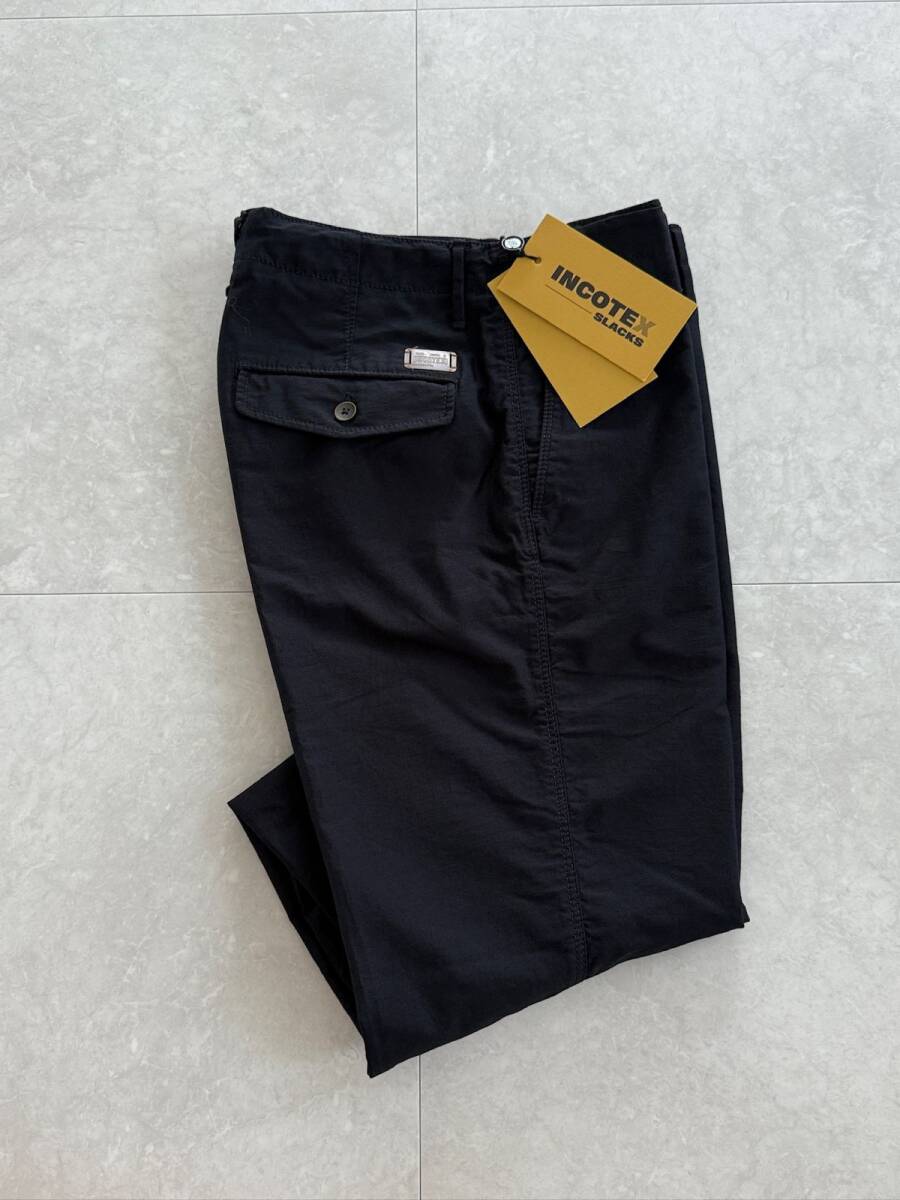 INCOTEX(インコテックス)の「SLACKS」ラインから展開されるテーパードフィットのコットンパンツは、ブランドのクラシカルなテーラリングをベースにしながら、現代的なカジュアルスタイルに最適化された一本です。素材には上質なコットン100%を採用しており、ナチュラルな風合いと肌に心地よいタッチを実現。 しっかりとした生地感でありながら、柔らかさと通気性を兼ね備えているため、シーズンを問わず快適に着用できます。 シルエットはブランドが得意とするテーパードフィットで設計され、腰回りに程よい余裕を持たせつつ、膝から裾にかけて自然に細くなるラインが特徴です。 そのため、リラックス感を保ちながらもすっきりとした脚のラインを演出し、ジャケットやシャツとの組み合わせでは上品に、カットソーやスニーカーと合わせれば都会的なカジュアルスタイルを楽しめます。 さらに、ウエスト部分やポケットの仕立てに見られる緻密な縫製技術は、長年パンツ専業ブランドとして信頼を築いてきたインコテックスならではのこだわりです。 装飾を抑えたシンプルなデザインだからこそ、ビジネスシーンからオフスタイルまで幅広く対応可能。 一本持っているだけでスタイリングの幅が大きく広がる、まさにワードローブのベーシックを担うアイテムといえるでしょう。 ブランド:INCOTEX / インコテックス サイズ:31 素材:コットン100% ウエスト:81cm 股上:24cm 股下:81cm わたり:30cm 裾幅:15.5cm ※実寸値となりますが誤差はご了承ください。 ※迅速なお取引を心がけさせていただいております。オークション終了より24時間以内にご連絡をいただけない場合、土日祝日を除き48時間以内にお支払い手続きをいただけない場合は、お取引の意思なしと判断させていただき取引キャンセルとさせていただきます。 万が一上記が不可の場合は事前にご連絡いただくか、入札をお控えいただきますようお願い申し上げます。 ※なるべく現物に近いお色味で撮影するよう心掛けておりますが、閲覧環境の違い等によって違いが出る場合があります。 差し替えトラブルを避ける意味でも上述した旨含め、イメージと違う等での返品は受け付けておりません。 百貨店並みのサービスを求める方や神経質な方の入札はお控えいただきますようお願い申し上げます。 |