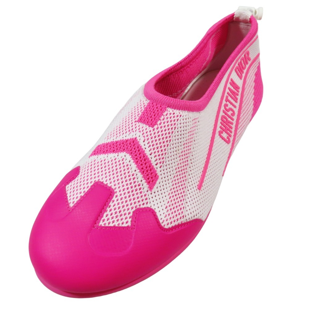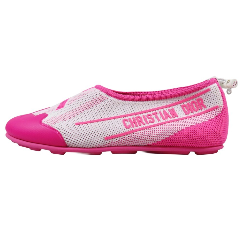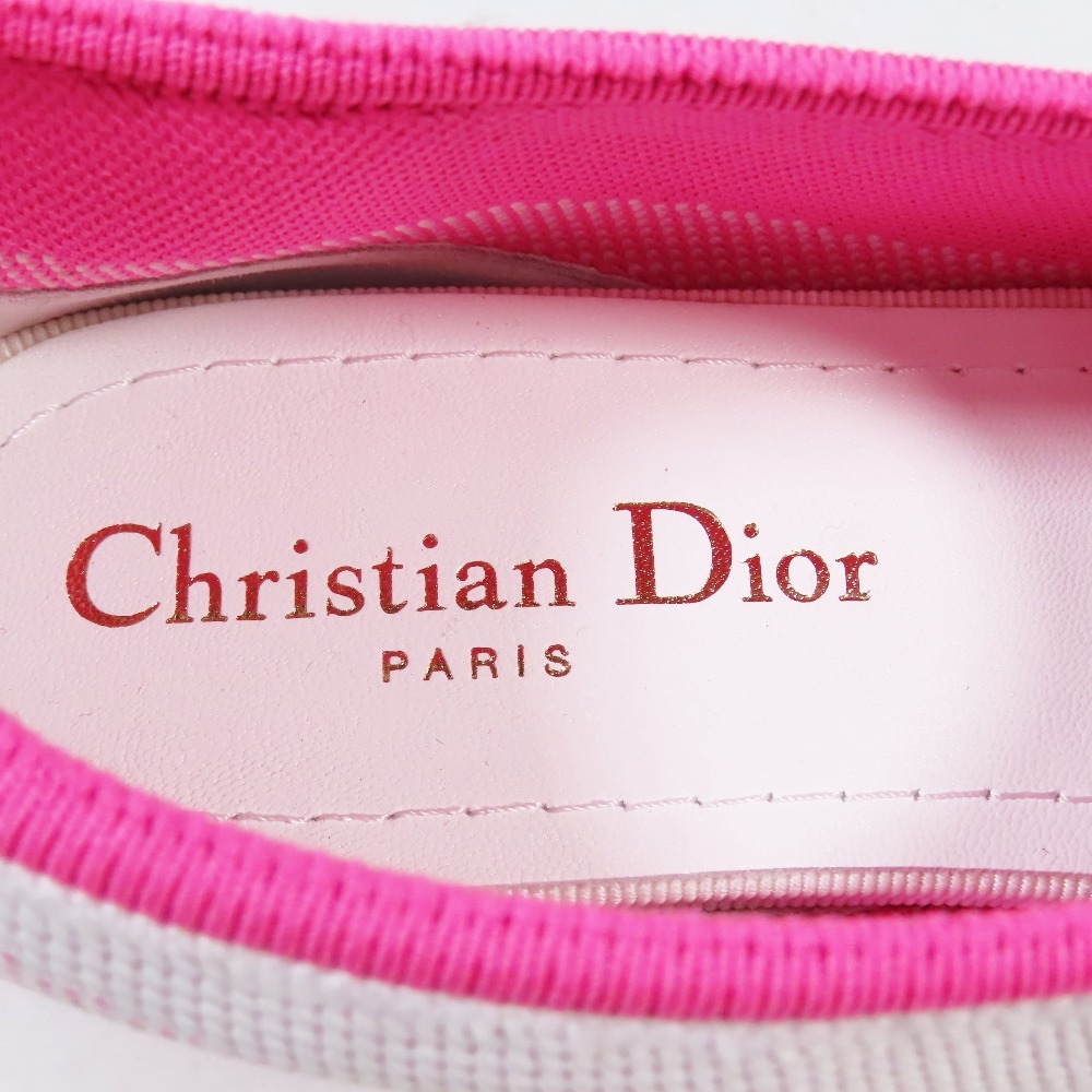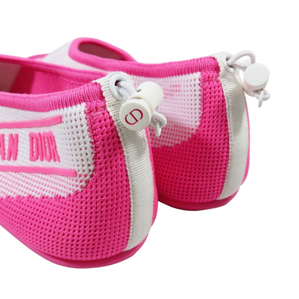 未使用 Christian Dior クリスチャンディオール フラットパンプス バレエシューズ スリッポン ラバーロゴ ジャガードニット 35.5ピンク