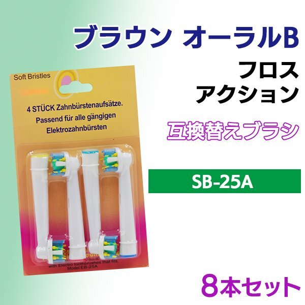 送料無料 ブラウン オーラルB EB-25A (4本入りx2 8本) /互換ブラシ OralB 電動歯ブラシ用 フロスアクション Braun 替えブラシ EB 25A